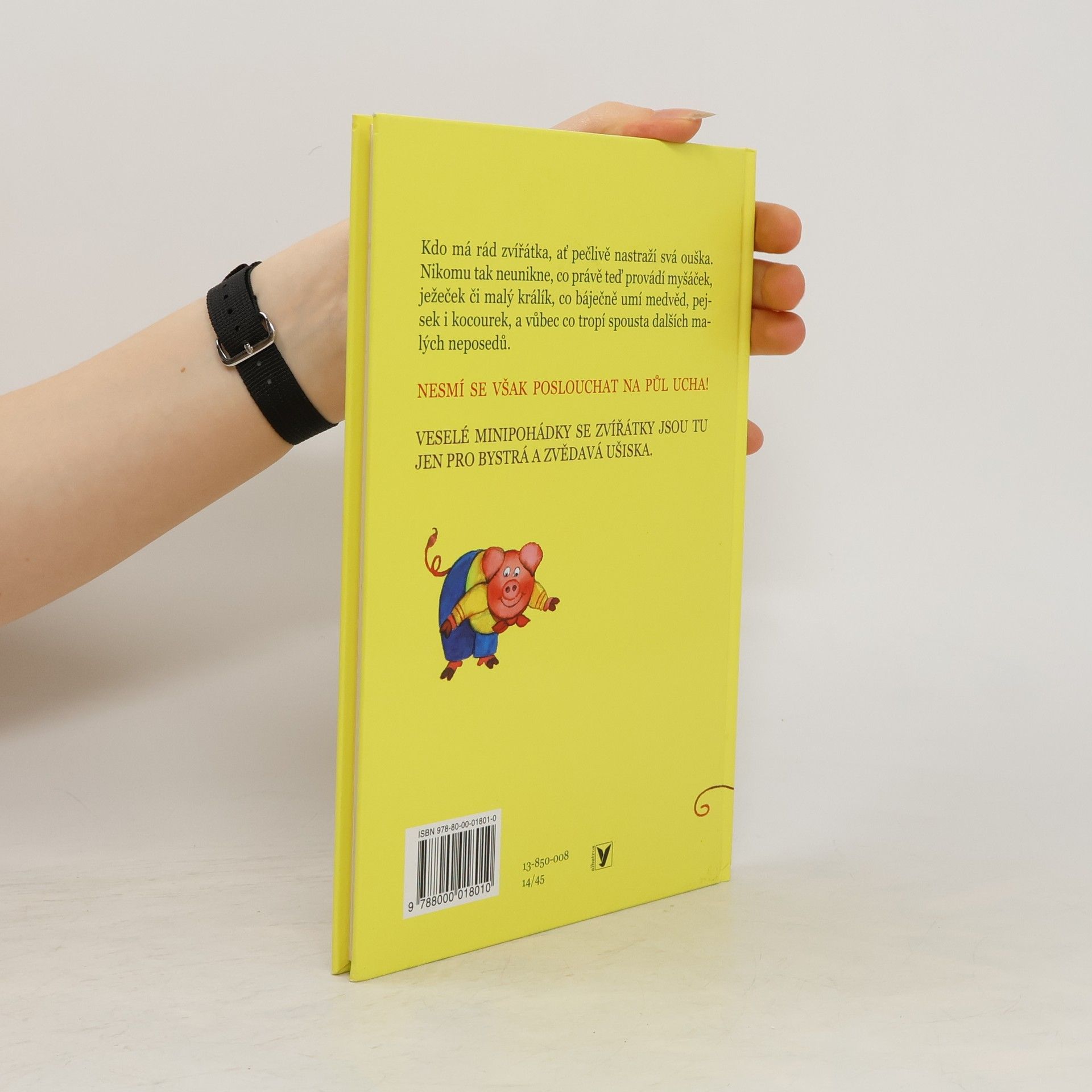 Kdo má rád zvířátka, ať pečlivě nastraží svá ouška. Ať nikomu neunikne, co právě teď provádí myšáček, ježeček, hrošík či malý králík, co báječně umí medvěd, pejsek i kocourek, a vůbec co tropí spousta dalších malých neposedů. Nesmí se však poslouchat na půl ucha! Veselé minipohádky se zvířátky jsou tu jen pro bystrá a zvídavá ušiska. 1. vydání Ilustrovala Andréa Korbelářová