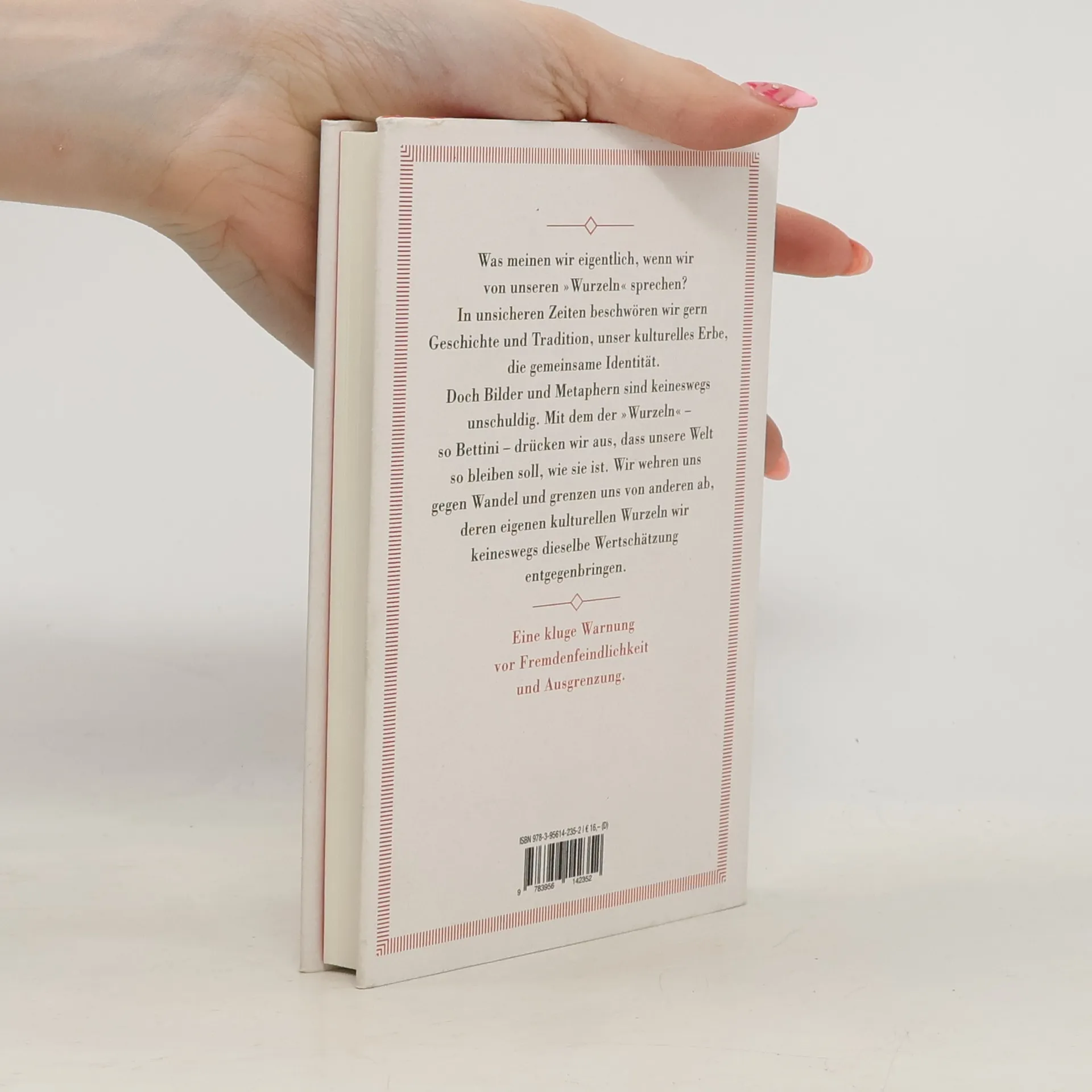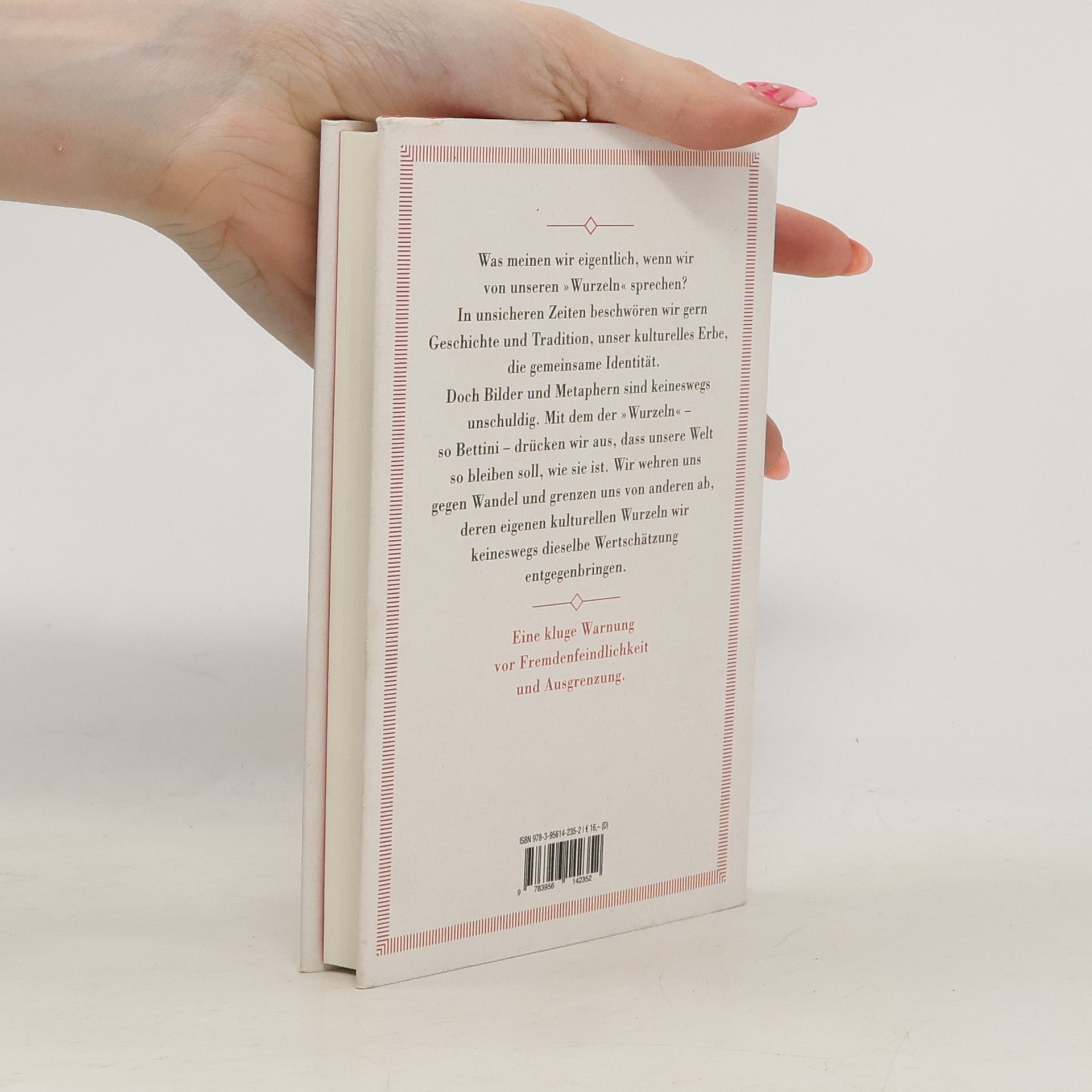 Ein heilsames Vademecum gegen die Leitkultur- Debatte, eine kluge Warnung vor Fremdenfeindlichkeit, Ausgrenzung und Missbrauch von Tradition und Geschichte. Was meinen wir eigentlich, wenn wir von unseren »Wurzeln« sprechen? In unsicheren Zeiten beschwören wir (statt der Zukunft) gern Geschichte und Tradition, unser kulturelles Erbe, die gemeinsame Identität. Doch Bilder und Metaphern sind keineswegs unschuldig. Mit dem der »Wurzeln« – so Bettini – drücken wir aus, dass unsere Welt so bleiben soll, wie sie ist. Wir wehren uns gegen Wandel und grenzen uns von anderen ab, deren eigenen kulturellen Wurzeln wir keineswegs dieselbe Wertschätzung entgegenbringen. Die Metapher suggeriert etwas Naturgegebenes, im wahrsten Sinne »Fundamentales«, eine quasi automatische Zugehörigkeit. Dabei wissen wir eigentlich, dass auch unsere Kultur wie alle anderen durch Aneignung, Wandel und Vermischung mit fremden Einflüssen entstanden ist; dass die vielzitierte kollektive Erinnerung oft nicht mehr ist als persönliche Nostalgie. Mit funkelnder Ironie umkreist Bettini die vielen Spielarten unserer neuen identitären Obsession: von wiederentdeckten, wenn nicht gar erfundenen Traditionen bis zur Inflation von Gedenktagen, vom Kult der Authentizität und Ursprünglichkeit bis zur Idealisierung von Großmutters Küche.