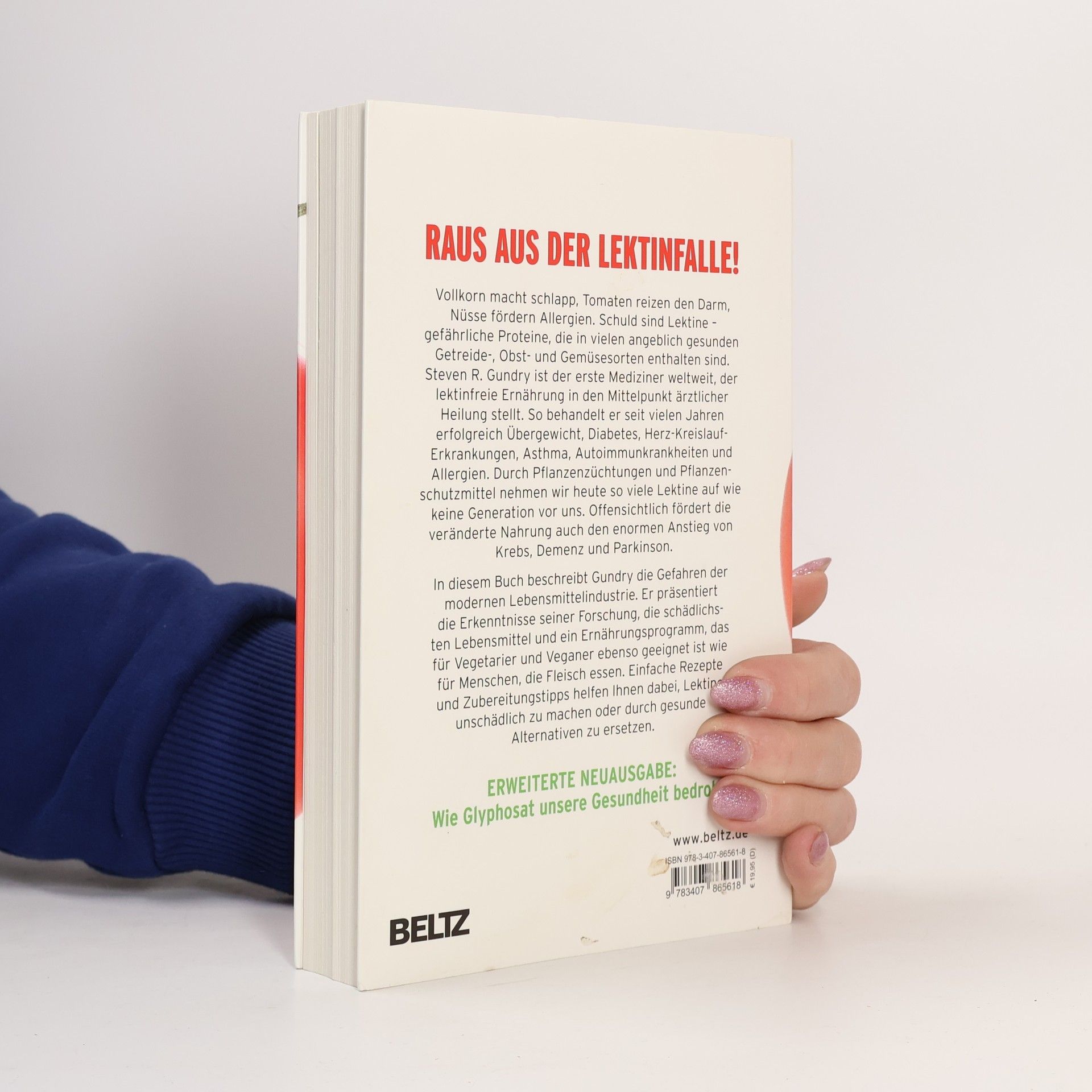 Vollkorn macht schlapp, Tomaten reizen den Darm, Nüsse fördern Allergien. Schuld sind Lektine – gefährliche Proteine, die in vielen angeblich gesunden Getreide-, Obst- und Gemüsesorten enthalten sind. Steven R. Gundry ist der erste Mediziner weltweit, der lektinfreie Ernährung in den Mittelpunkt ärztlicher Heilung stellt. So behandelt er seit vielen Jahren erfolgreich Allergien, Herz-Kreislauf-Erkrankungen, Asthma, Autoimmunkrankheiten, Diabetes und Übergewicht. Durch Pflanzenzüchtungen und Pflanzenschutzmittel wie Glyphosat nehmen wir heute so viele Lektine auf wie keine Generation vor uns. Offensichtlich fördert die veränderte Nahrung auch den enormen Anstieg von Krebs, Demenz und Parkinson. In diesem Buch beschreibt Gundry die Gefahren der modernen Lebensmittelindustrie. Er präsentiert die Erkenntnisse seiner Forschung, die schädlichsten Lebensmittel und ein Ernährungsprogramm, das für Vegetarier und Veganer ebenso geeignet ist wie für Menschen, die Fleisch essen. Einfache Rezepte und Zubereitungstipps helfen Ihnen dabei, Lektine unschädlich zu machen oder durch gesunde Alternativen zu ersetzen.