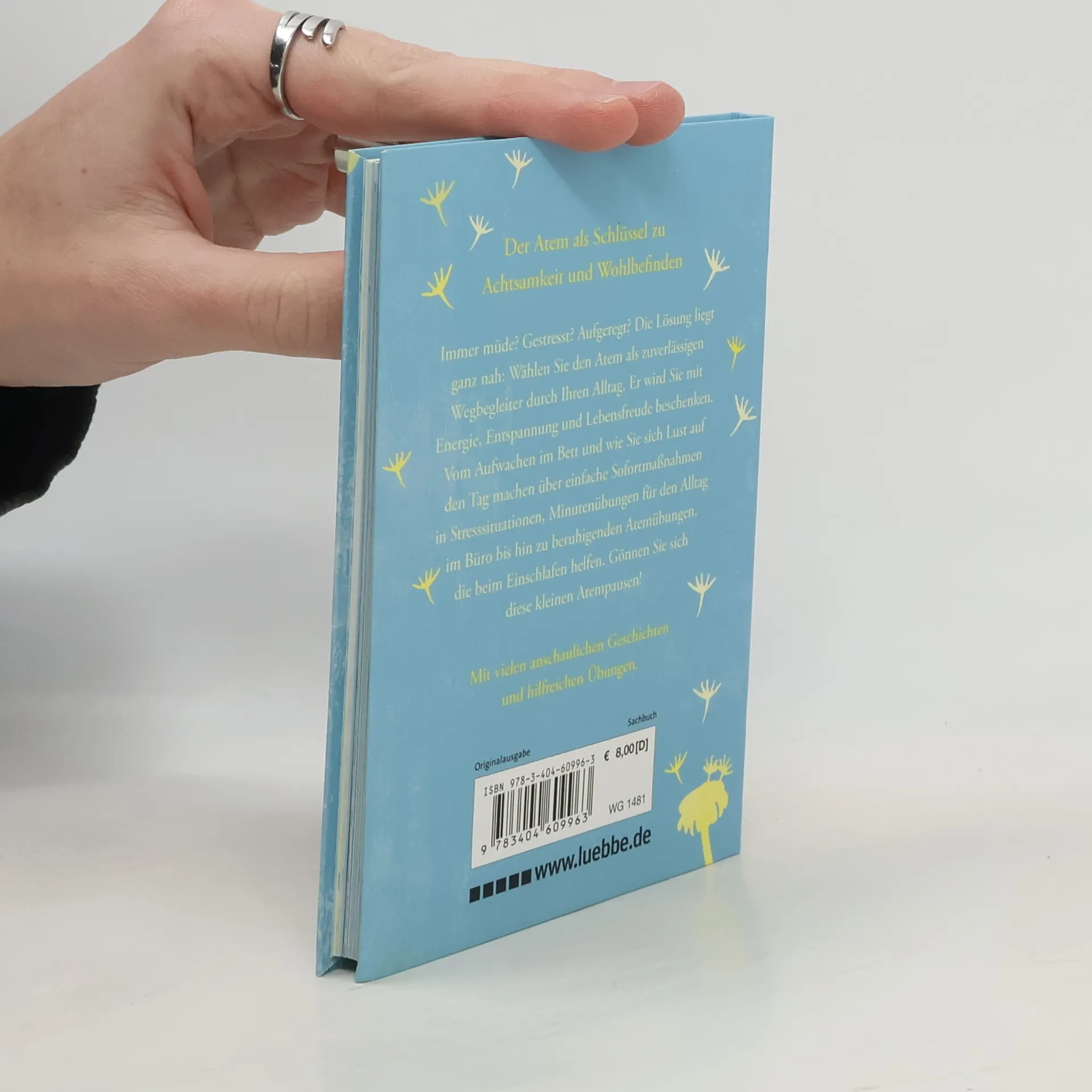 Immer müde? Gestresst? Aufgeregt? Schon kleine einfache Übungen ermöglichen das unmittelbare Aufatmen im wörtlichen Sinne. Für schnelle Stressreduktion und Entspannung, für die schnelle Rückgewinnung von Energie und Konzentration, für Souveränität und Gelassenheit. Vom Aufwachen im Bett und wie Sie sich Lust auf den Tag machen über einfache Sofortmaßnahmen in Stresssituationen, Minutenübungen für den Alltag im Büro bis hin zu beruhigenden Atemübungen, die beim Einschlafen helfen.