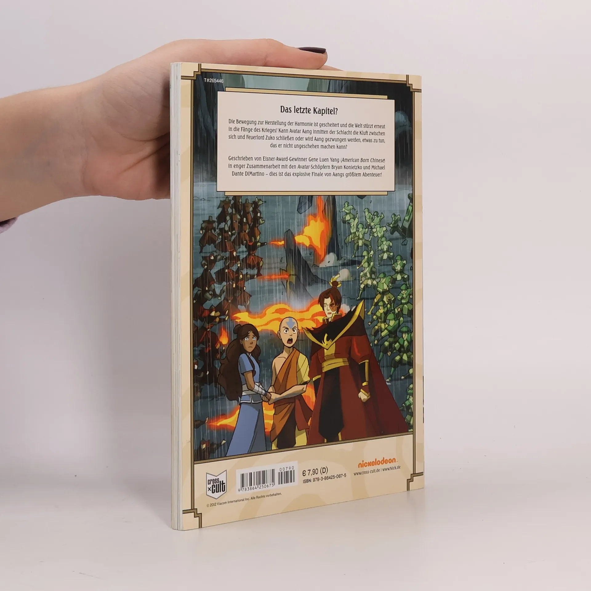Die Zeit des Friedens war von kurzer Dauer! Das Erdkönigreich und die Feuernation mobilisieren ihre Armeen für die letzte Schlacht. In Yu Dao hat man sich so gut es geht auf den Wiederausbruch des Krieges vorbereitet. Doch muss sich jetzt ein jeder Bewohner der Stadt, die nun seit fast 100 Jahren eine gemischte Gesellschaft kennt, fragen, für welche Seite er oder sie kämpfen wird … Und während Aang und seine Freunde alle Hebel in Bewegung zu setzen versuchen, um dem erneuten Krieg eine jähes Ende zu bereiten, ringt der Avatar mit sich selbst, ob er das Versprechen über Leben und Tod, das er Zuko gab, wird einhalten … einhalten müssen, um dem Schrecken ein für allemal ein Ende zu setzen! Nach dem TV-Serienende von „Avatar: Der Herr der Elemente“ haben Fans weltweit auf eine Fortsetzung gehofft. Das Flehen wurde erhört! Doch statt für eine TV-Serie entschied man sich für eine exklusive Fortsetzung im Comic … und die Erwartungen wurden übertroffen. Schon kurz nach Erscheinen stürmte der 1. Band die Top 10 der New-York-Times-Comic-Bestsellerliste! Wendungsreich, spannend und nicht selten mit einem humorvollen Augenzwinkern: ein Lese-Abenteuer für jung und alt! Von Eisner-Award-Gewinner Gene Luen Yang und den Machern des TV-Hits Bryan Konietzko, Michael Dante DiMartino und den Gurihiru-Schwester!