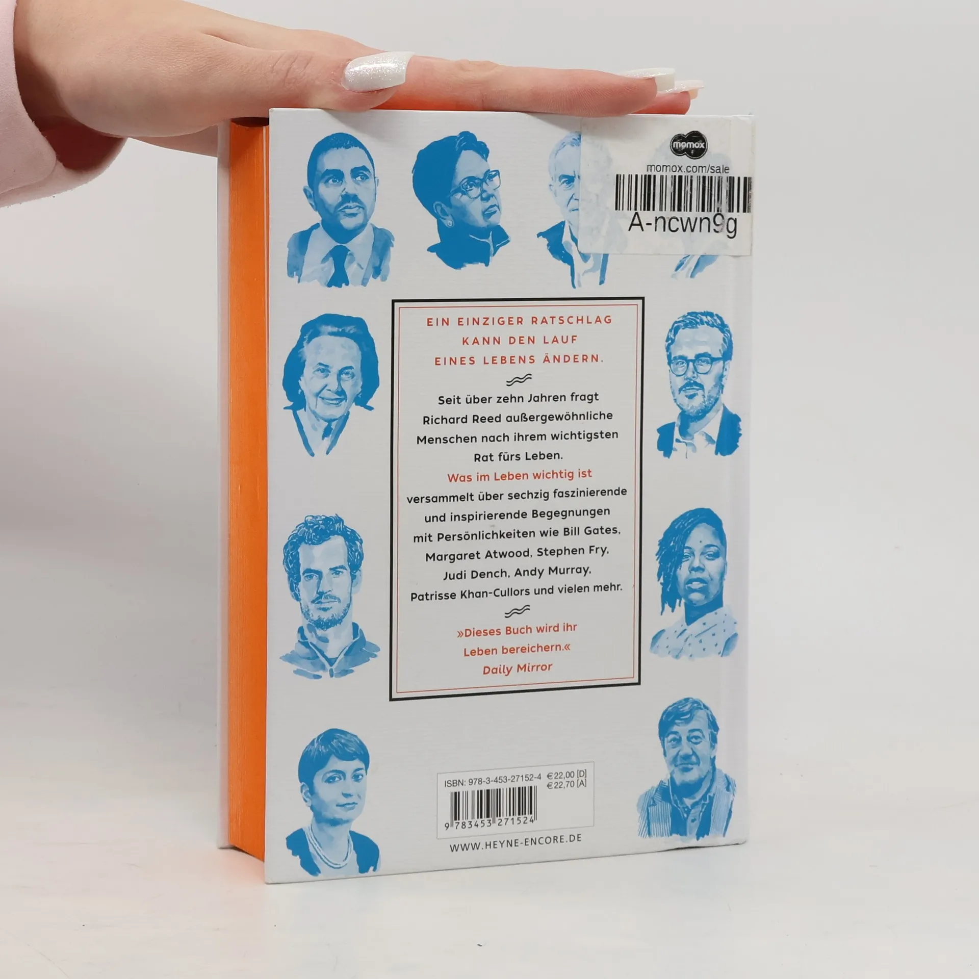 Bill Gates, Judi Dench, Stephen Fry, Margaret Atwood, David Attenborough, Annie Lennox, Jude Law, Marina Abramović, Andy Murray, Patrisse Khan-Cullors – das sind nur einige von über sechzig faszinierenden Persönlichkeiten, die Richard Reed für sein Buch getroffen hat. Reed hat sie gebeten, ihren wertvollsten Ratschlag fürs Leben mit seinen Lesern zu teilen. Jede der beschriebenen Begegnungen wird ergänzt um ein eigens angefertigtes Porträt des britischen Künstlers Samuel Kerr. Was im Leben wichtig ist ist ein kluges, hochunterhaltsames Buch für alle Lebenslagen, das sich zudem sehr gut verschenken lässt. Ausstattung: mit zahlreichen s/w-Ilustrationen