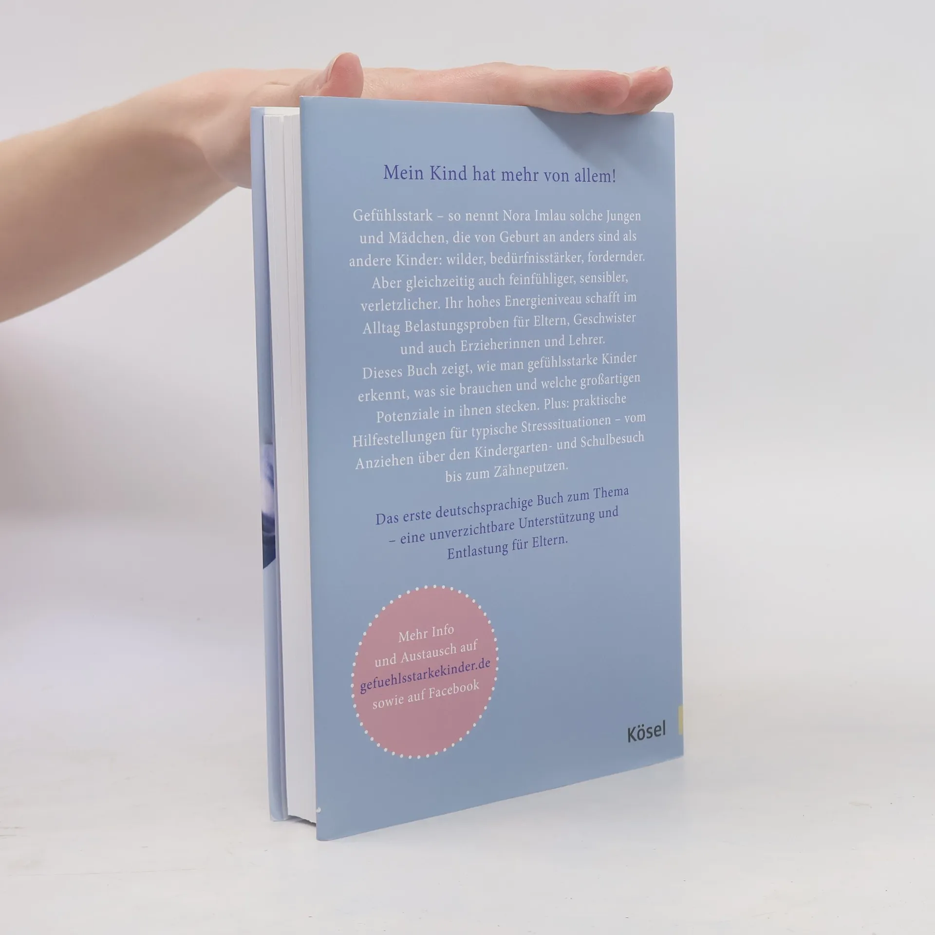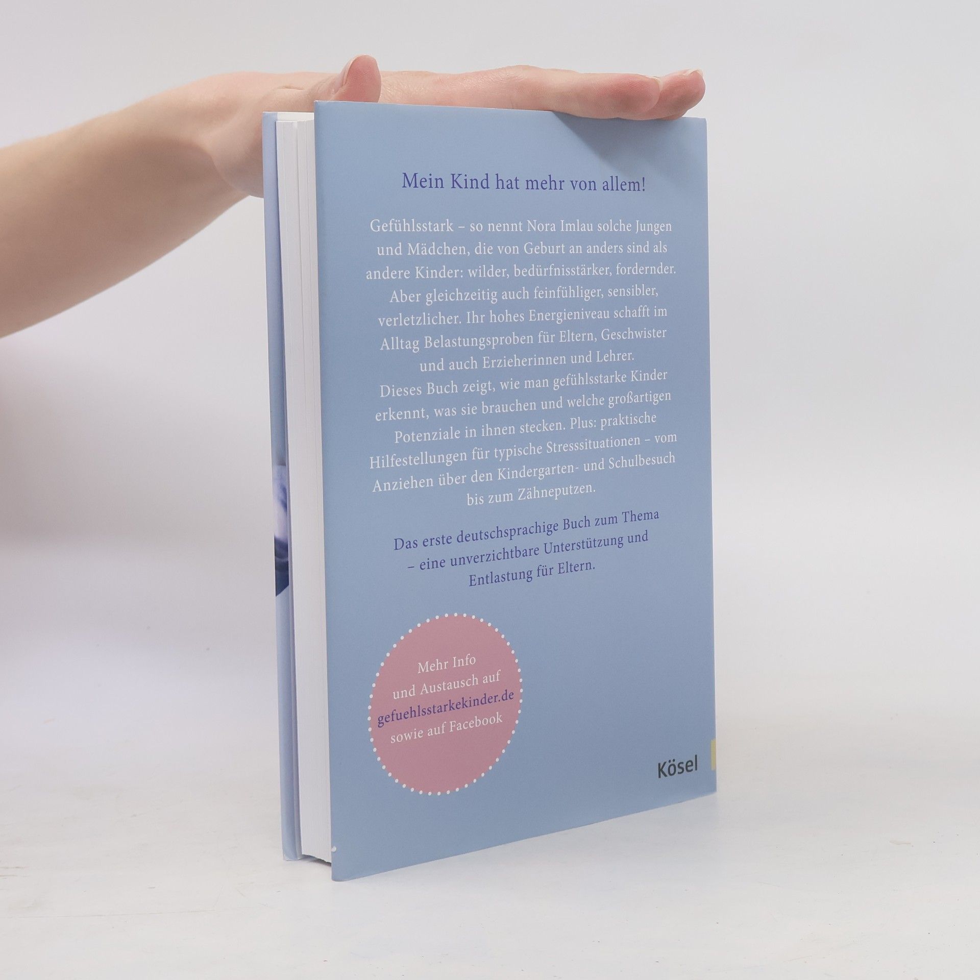 *** Bestseller *** Bestseller *** Bestseller *** Gefühlsstarke Kinder – so nennt Nora Imlau Jungen und Mädchen, die von Geburt an anders sind als andere Kinder: wilder, bedürfnisstärker, fordernder. Aber gleichzeitig auch feinfühliger, sensibler, verletzlicher. Jedes siebte Kind kommt mit dieser besonderen Spielart der Persönlichkeitsentwicklung zur Welt. So viele! Und doch fühlen sich viele Eltern sehr allein, wenn ihr Kind als gefühlt einziges als Baby den Kinderwagen hasst und im Rückbildungskurs nicht auf der Matte liegen mag, auch als Kindergartenkind noch nicht alleine einschlafen kann und selbst im Schulalter noch viel Hilfe im Umgang mit seinen heftigen Gefühlsausbrüchen braucht. Gewohnt fachkundig und einfühlsam leuchtet Nora Imlau aus, warum gefühlsstarke Kinder sich so von Gleichaltrigen unterscheiden und was sie von ihren Eltern brauchen, um einen gesunden Umgang mit ihren intensiven Emotionen zu erlernen. Plus: Ganz praktische Hilfestellungen für typische Stress- und Konfliktsituationen mit gefühlsstarken Kindern – vom Anziehen über den Kindergarten- und Schulbesuch bis zum Zähneputzen.* Mit Einschätzungsbogen für Eltern und Kinder* Mehr Informationen und Test auf gefuehlsstarke-kinder. de Ausstattung: Durchgehend vierfarbig