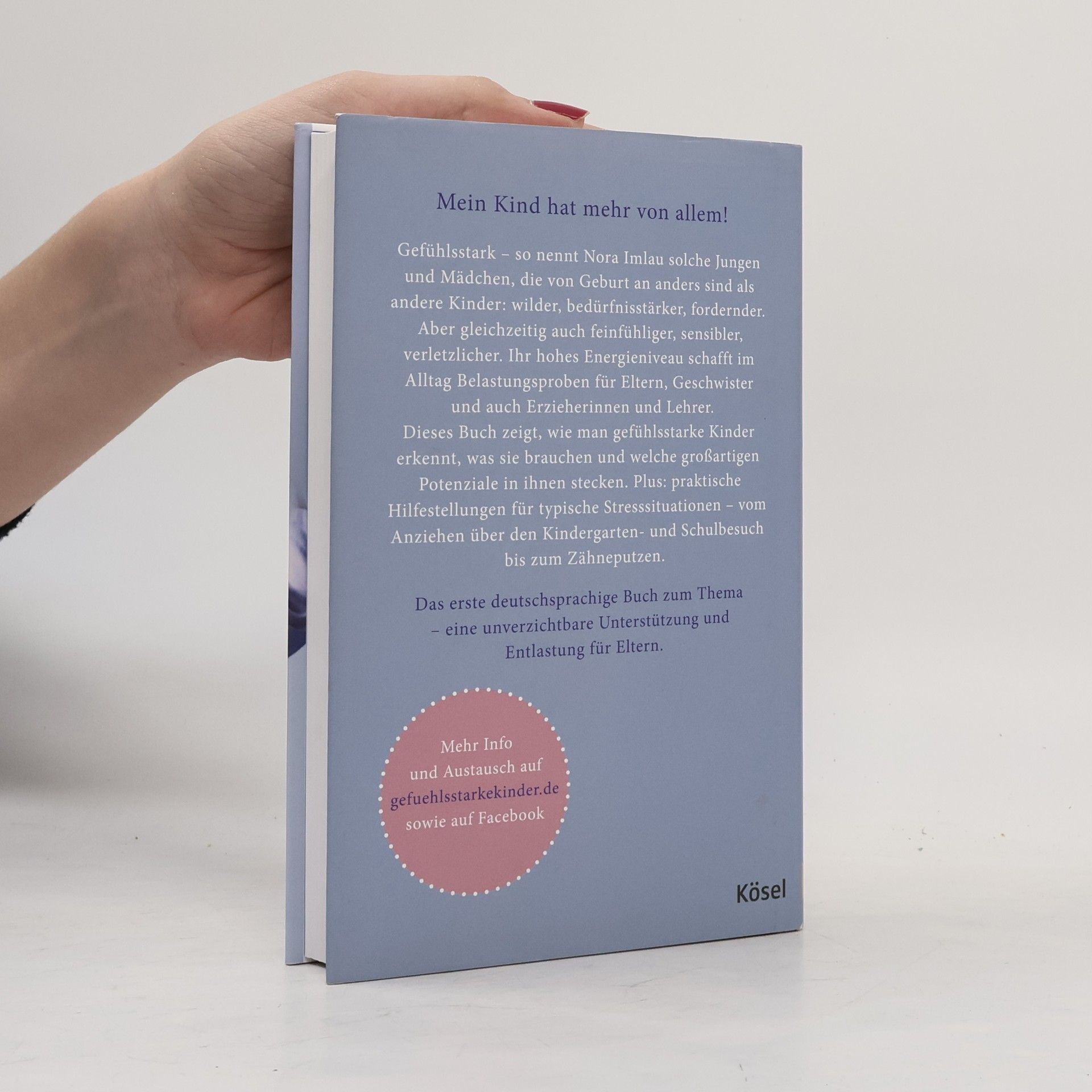 *** Bestseller *** Bestseller *** Bestseller *** Gefühlsstarke Kinder – so nennt Nora Imlau Jungen und Mädchen, die von Geburt an anders sind als andere Kinder: wilder, bedürfnisstärker, fordernder. Aber gleichzeitig auch feinfühliger, sensibler, verletzlicher. Jedes siebte Kind kommt mit dieser besonderen Spielart der Persönlichkeitsentwicklung zur Welt. So viele! Und doch fühlen sich viele Eltern sehr allein, wenn ihr Kind als gefühlt einziges als Baby den Kinderwagen hasst und im Rückbildungskurs nicht auf der Matte liegen mag, auch als Kindergartenkind noch nicht alleine einschlafen kann und selbst im Schulalter noch viel Hilfe im Umgang mit seinen heftigen Gefühlsausbrüchen braucht. Gewohnt fachkundig und einfühlsam leuchtet Nora Imlau aus, warum gefühlsstarke Kinder sich so von Gleichaltrigen unterscheiden und was sie von ihren Eltern brauchen, um einen gesunden Umgang mit ihren intensiven Emotionen zu erlernen. Plus: Ganz praktische Hilfestellungen für typische Stress- und Konfliktsituationen mit gefühlsstarken Kindern – vom Anziehen über den Kindergarten- und Schulbesuch bis zum Zähneputzen.* Mit Einschätzungsbogen für Eltern und Kinder* Mehr Informationen und Test auf gefuehlsstarke-kinder. de Ausstattung: Durchgehend vierfarbig