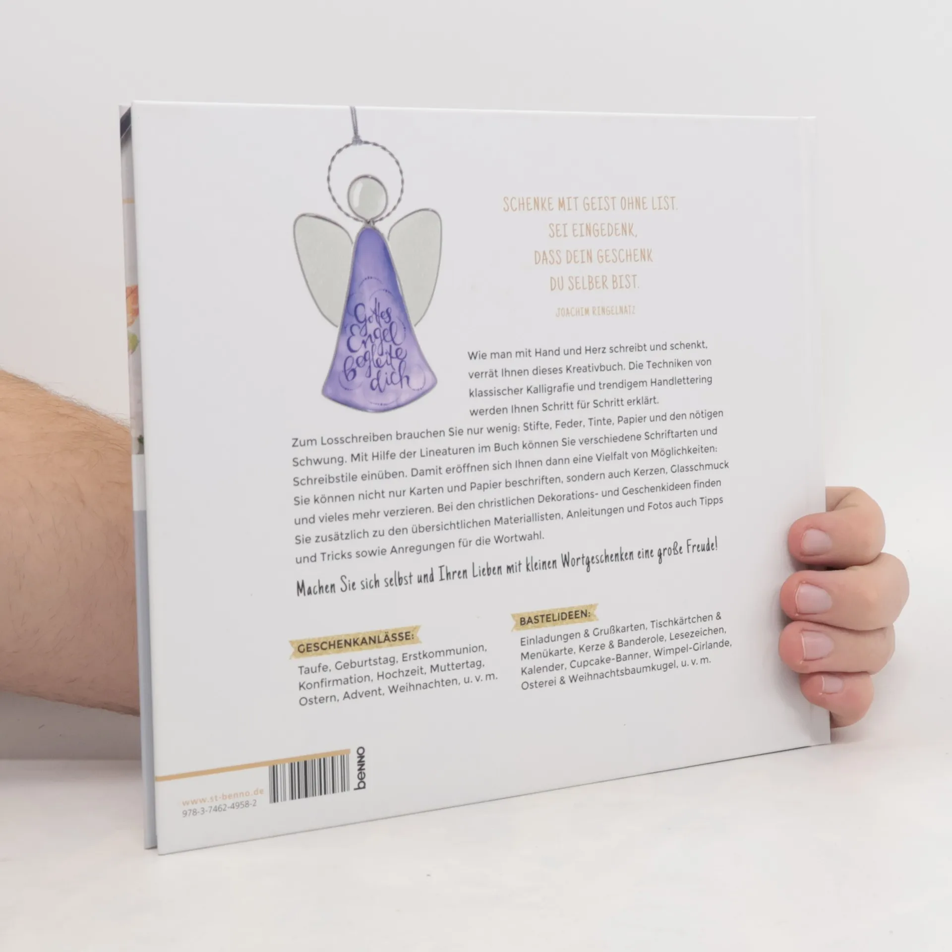 Entdecken Sie Kalligrafie und Handlettering als Auszeit im hektischen Alltag. Dieses Buch präsentiert erstmals kreative Geschenkideen für zahlreiche christliche Feste, die sich mit dem modernen Schönschreiben gestalten lassen, und gibt zugleich einen kleinen Einblick in seine Ursprünge, die in der Kalligrafie, verstanden als jahrhundertealte, christliche Schreibtradition, liegen. Das aufwendig gestaltete Kreativbuch vermittelt im ersten Teil praktische Grundkenntnisse zum Umgang mit den Schreibgeräten und bietet die Möglichkeit, Schriften zu üben. Im zweiten Teil steht Ihnen auf den Kreativseiten eine große Auswahl an Schreibprojekten zur Verfügung. Egal ob Geburtstag, Taufe oder Genesungsgeschenk: Gute Wünsche lassen sich in den verschiedensten Formen kreativ äußern. Erkunden Sie das Schönschreiben, beschenken Sie Ihre Lieben kreativ und geben Sie so Gottes Segenswünsche mit auf alle Lebenswege!