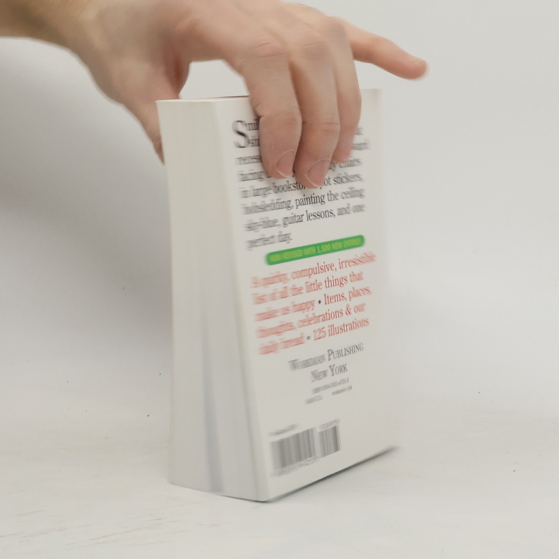 Something to be happy This mesmerizing bestseller is revised and updated. Originally published 25 years ago (happy anniversary!) from a list that Barbara Ann Kipfer started making as a child, it’s the book that marries obsession with happiness. And it now has 2,000 fresh and more current reasons to be Rabbit tracks in the snow.Kiteboarding and kitesurfing.Caramel gelato.Scoring super-high on a Scrabble turn.Babies burping.Summer storms.White cupcakes with multicolored sprinkles.Big red barns.20 minutes all to yourself.No opinions, no explanations, no asides, no footnotes, editorializing, or proselytizing. Just the simple premise of a list of things that make us smile. With its chunky shape, striking black-and-white cover, and 100 whimsical illustrations by Pierre Le-Tan, the new 14,000 Things is an irresistible catalog of good thoughts completely updated to reflect today’s world―and an uplifting gift for people of all moods and all ages.