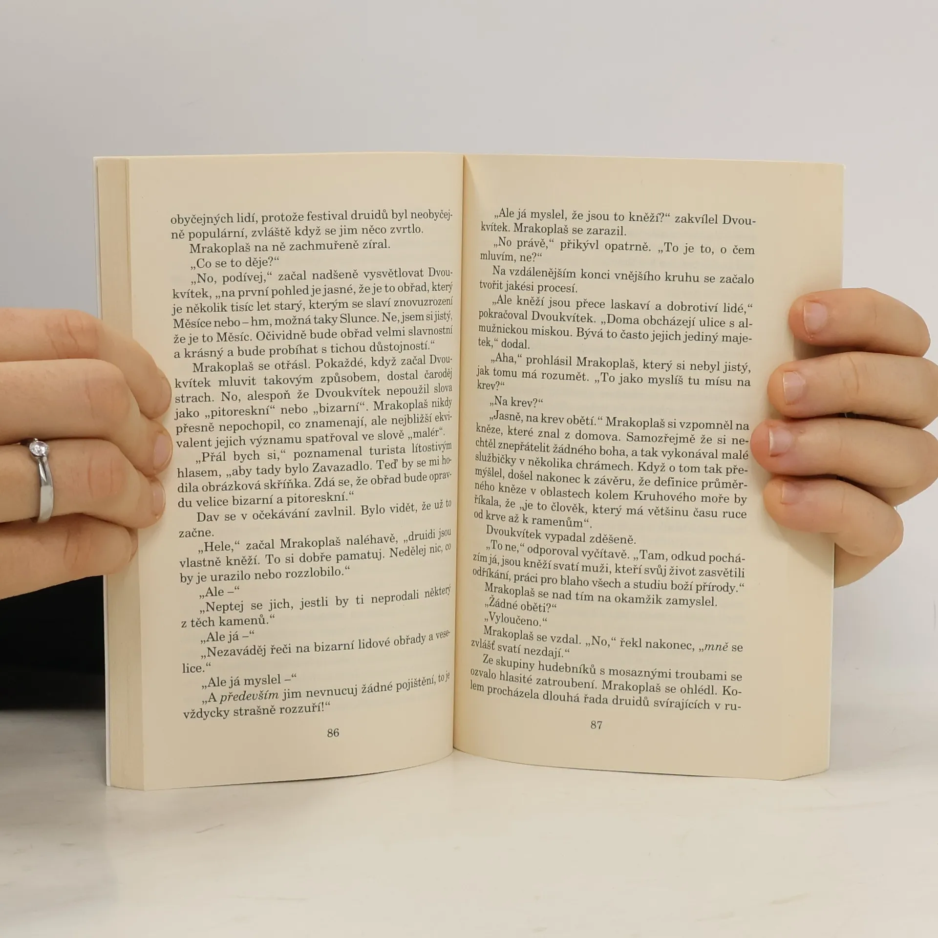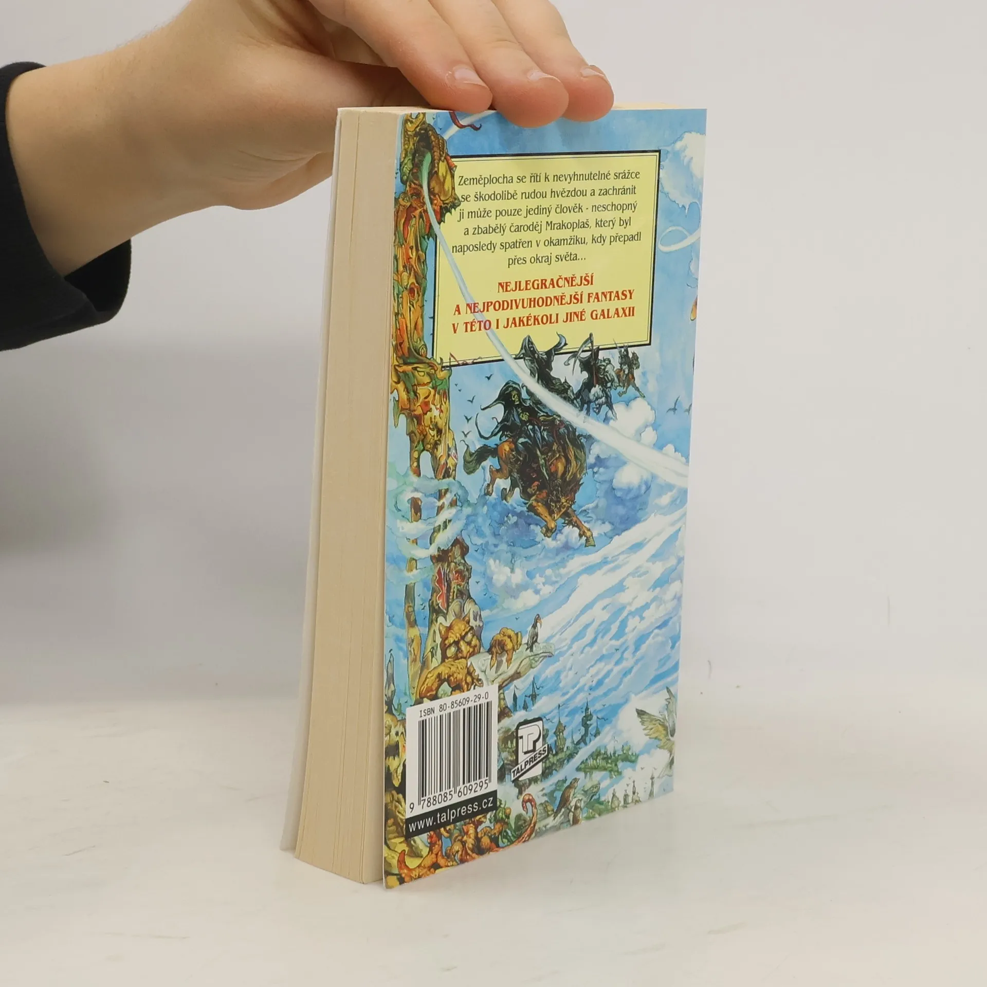 Zeměplocha se řítí k nevyhnutelné srážce se škodolibou rudou hvězdou a zachránit ji může pouze jediný člověk – neschopný a zbabělý čaroděj Mrakoplaš, který byl naposledy spatřen v okamžiku, kdy přepadl přes okraj světa... Nejlegračnější a nejpodivuhodnější fantasy v této i jakékoli jiné galaxii!!!