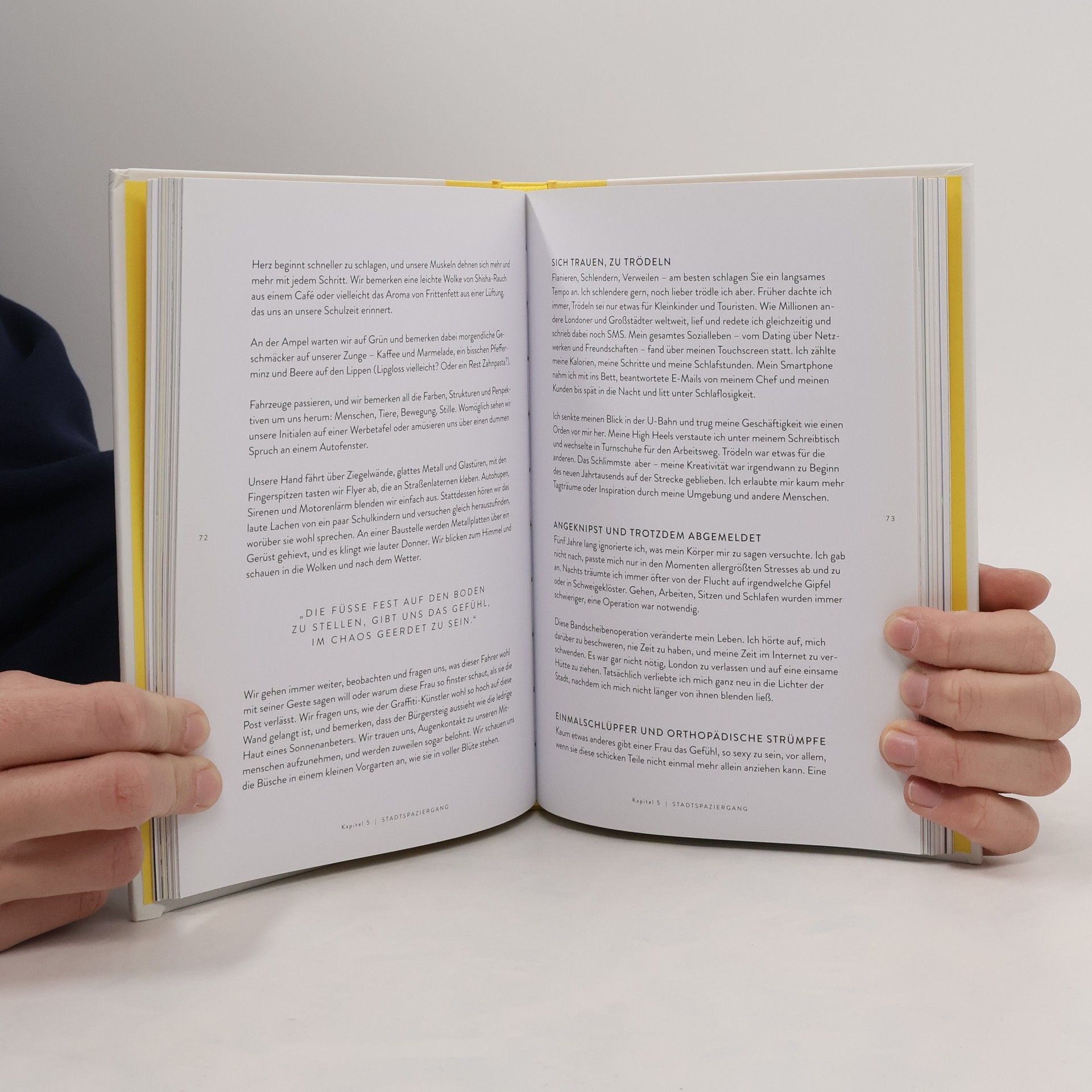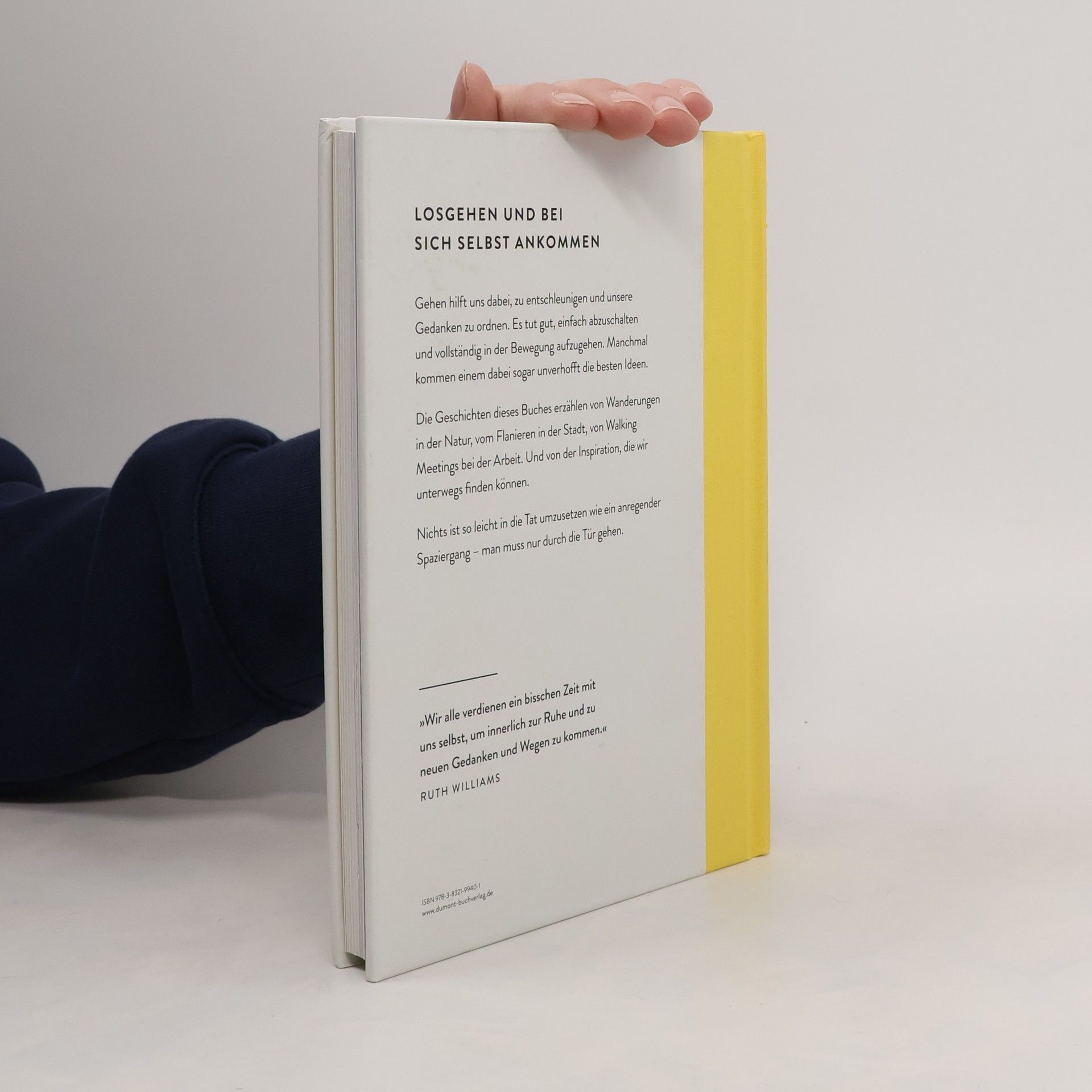 Beim Gehen kommen einem oft die besten Ideen. Es hilft uns zu entschleunigen, unsere Gedanken zu ordnen und Situationen aus einer anderen Perspektive zu betrachten. Manchmal tut es aber auch gut, einfach abzuschalten und vollständig in der Bewegung aufzugehen. Oder die Aufmerksamkeit auf andere Dinge zu richten: die Farben, die einen umgeben; den Untergrund, auf dem man sich bewegt; die eigenen Schritte. ›Walking in the Rain‹ versammelt zehn Geschichten von Künstlern, Designern, Autoren und Psychologen, die in ihren regelmäßigen Spaziergängen Inspiration finden. Sie berichten von Wanderungen in der Natur, vom Flanieren in der Stadt, von bewegenden Begegnungen beim Pilgern und von Walking-Meetings bei der Arbeit. In jedem Kapitel finden sich Ideen und Anregungen, die dabei helfen, tägliche Routinen und einen eigenen Rhythmus zu entwickeln. Nichts ist so leicht in die Tat umzusetzen wie ein Spaziergang – man muss nur durch die Tür gehen. »Wir alle verdienen ein bisschen Zeit mit uns selbst, um innerlich zur Ruhe und zu neuen Gedanken und Wegen zu kommen.« RUTH WILLIAMS, DEPT. STORE FOR THE MIND
