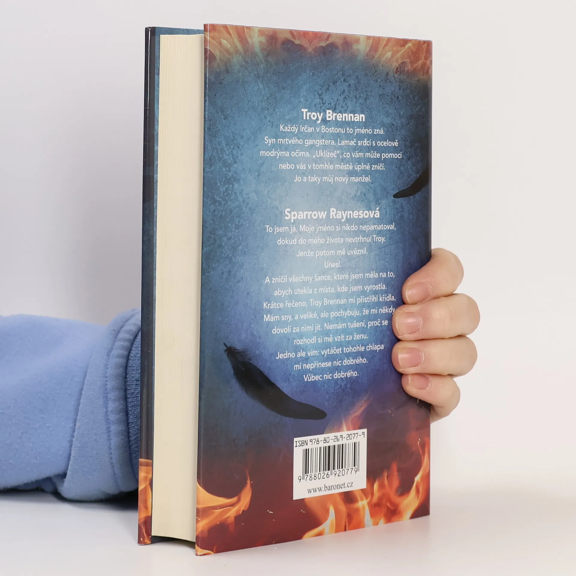 Troy Brennan. Každý Ir v Bostonu to jméno zná. Syn mrtvého gangstera. Lamač srdcí s ocelově modrýma očima. „Uklízeč“, co vám může pomoct nebo vás v tomhle městě úplně zničí.Jo a taky můj nový manžel.Sparrow RaynesováTo jsem já. Moje jméno si nikdo nepamatoval, dokud do mého života nevtrhl Troy.Jenže potom mě uvěznil.Unesl.A zničil všechny šance, co jsem měla na to, abych utekla z místa, kde jsem vyrostla.Krátce řečeno, Troy Brennan mi přistřihl křídla.Mám sny, a veliké, ale pochybuju, že mi někdy dovolí je následovat. Nemám tušení, proč se rozhodl vzít si mě za ženu. Jedno ale vím: vytáčet tohohle chlapa mi nic dobrého nepřinese. Vůbec nic dobrého.