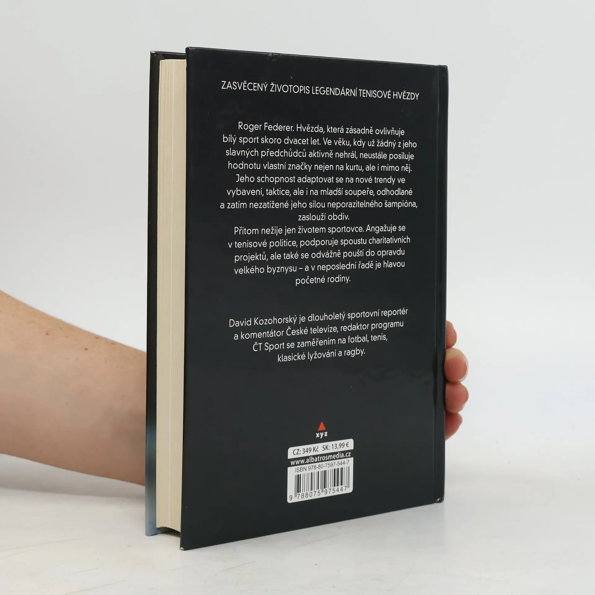 Roger Federer. Hvězda, která zásadně ovlivňuje bílý sport skoro dvacet let. Jeho schop¬nost adaptovat se na nové trendy ve vybavení, taktice, ale i na mladší soupeře, odhodlané a zatím nezatížené jeho silou neporazitelného šampióna, zaslouží obdiv. Přitom nežije jen životem sportovce. Angažuje se v te¬nisové politice, podporuje spoustu charitativních projektů, ale také se odvážně pouští do opravdu velkého byznysu – a v neposlední řadě je hlavou početné rodiny.