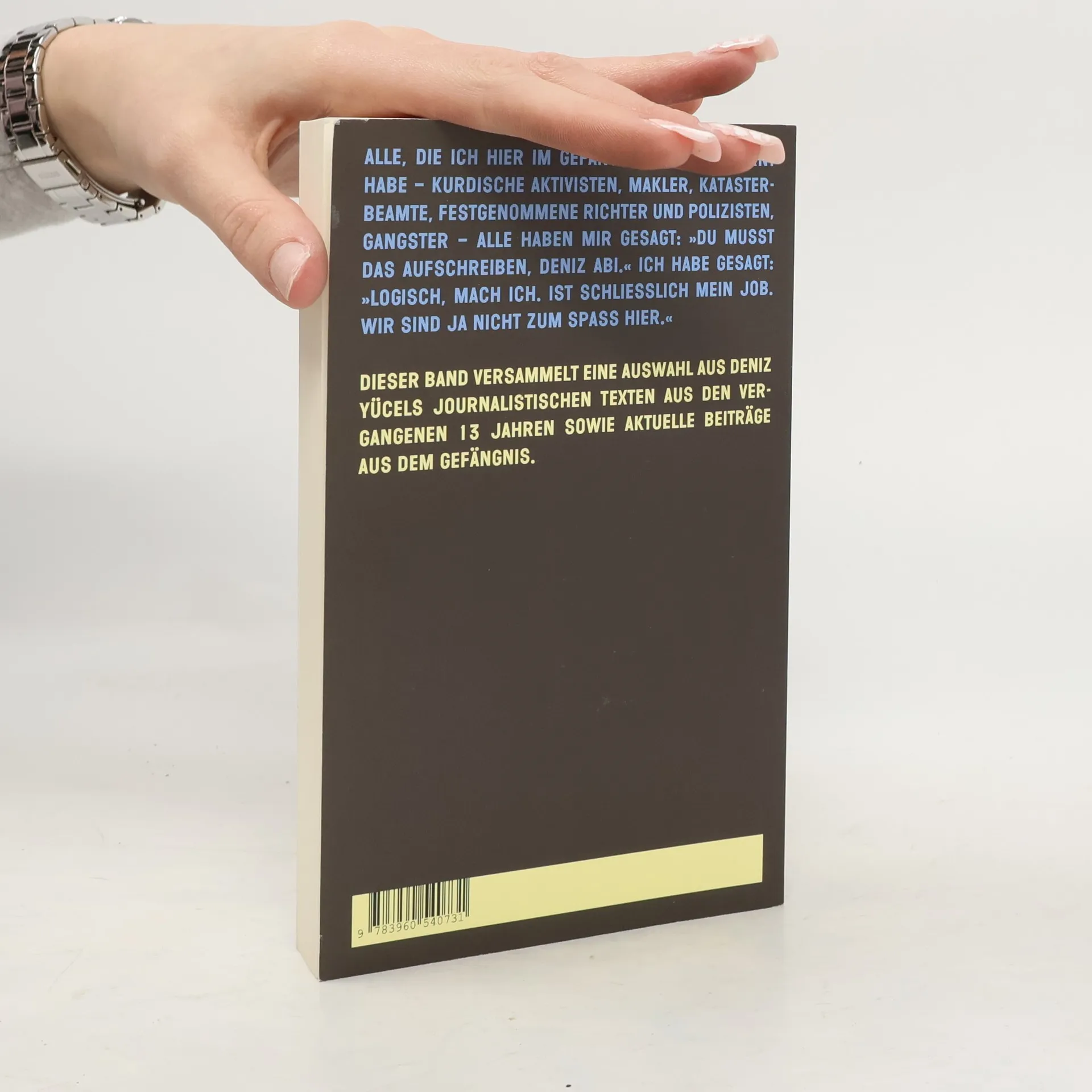 Im Februar 2017 schreibt Deniz Yücel aus dem Polizeigewahrsam in Istanbul: „Dieser Ort hat keine Erinnerung.“ Während seiner einjährigen Haftzeit hat er, unterstützt von seiner Journalistin-Kollegin Doris Akrap, eine Auswahl seiner Texte aus den letzten 13 Jahren zusammengestellt. Diese Sammlung umfasst Reportagen, Satiren, Polemiken, Kommentare und andere „Gebrauchstexte aus dem Handgemenge“. Ergänzt werden sie durch zwei neue Stücke, die Yücel im Hochsicherheitsgefängnis Silivri Nr. 9 verfasst hat, sowie einen Beitrag seiner Frau, Dilek Mayatürk Yücel. Yücel thematisiert unter anderem Journalismus, Migration und die Türkei. Sein Stil verbindet bissige Gesellschaftskritik mit klaren Analysen. Er beleuchtet Themen wie „Scheißefinden und Besserwissen“ im Journalismus, „Mathe für Ausländer“ im Kontext von Migration und „Biokoks und Surenbingo“ in der Gesellschaft. Seine Beiträge sind tiefgründig, persönlich und einfühlsam, ohne überflüssige Ausschweifungen. Günter Wallraff beschreibt die Texte als großen Journalismus, der sowohl informativ als auch bewegend ist.