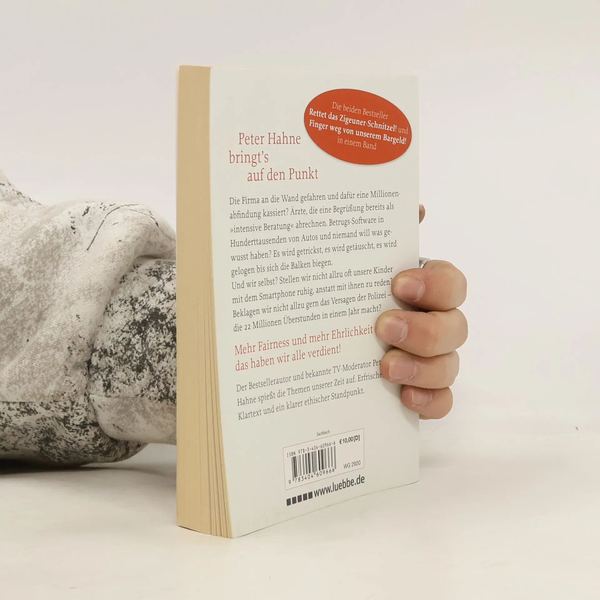 „Rettet das Zigeunerschnitzel“ und „Finger weg von unserem Bargeld“ in einem Band. Die wöchentlichen Kolumnen von Peter Hahne sind eine Institution. Der bekannte Publizist nimmt kein Blatt vor den Mund. Starke Texte gegen die täglichen Zumutungen und die dreisten Lügen mit denen wir allzu oft von Wirtschaft und Politik für dumm verkauft werden sollen. Ein Plädoyer für ethisch-verantwortliches Handeln. Gegen populistische Bauernfängerei fragwürdiger Parteien. Die haben wir nicht verdient!