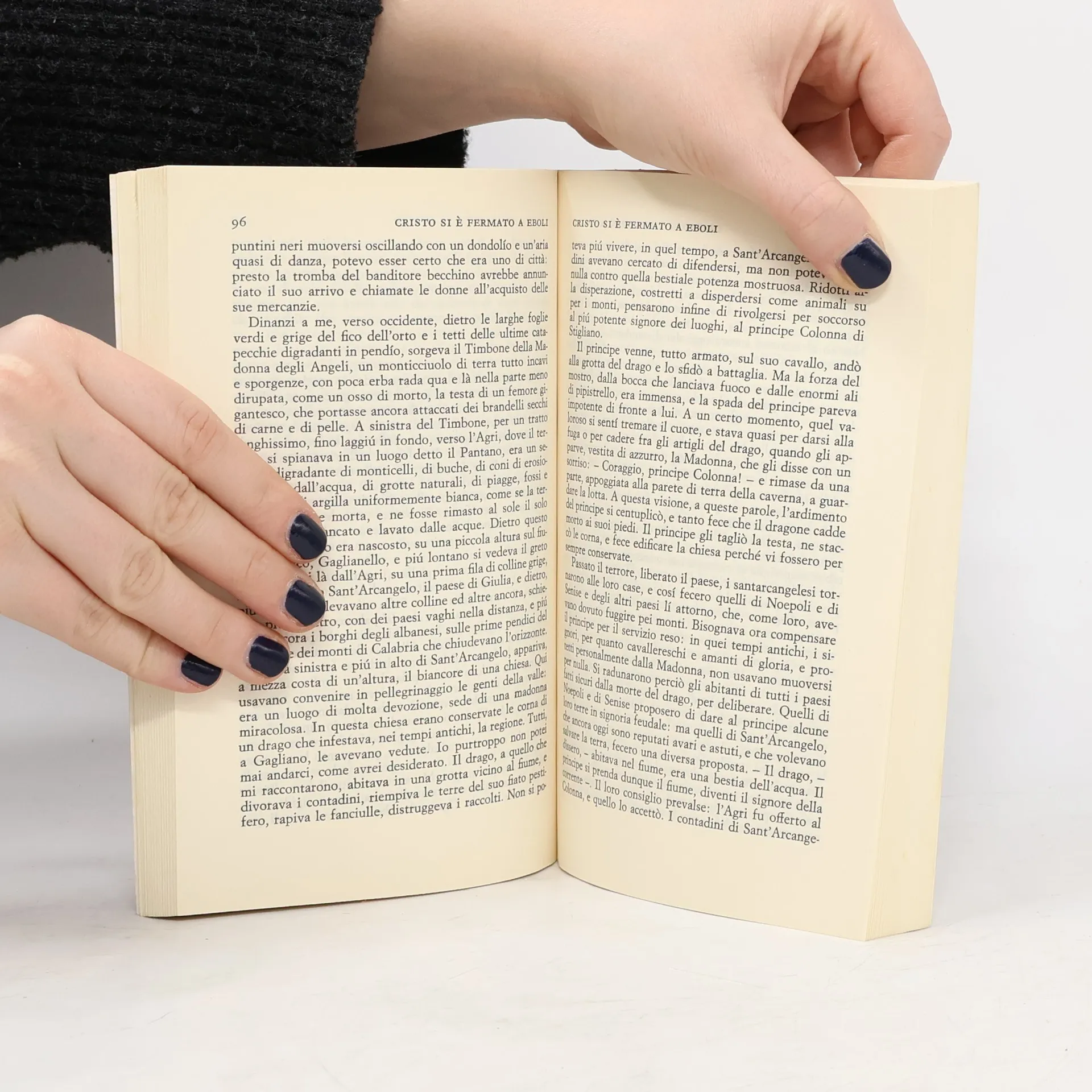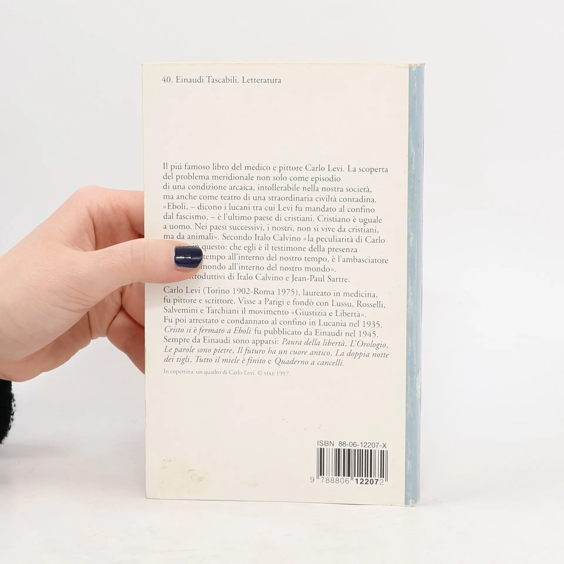 Il più famoso libro del medico e pittore Carlo Levi. La scoperta del problema meridionale non solo come episodio di una condizione arcaica, intollerabile nella nostra società, ma anche come teatro di una straordinaria civiltà contadina. «Eboli,--dicono i lucani tra cui Levi fu mandato al confino dal fascismo,--è l’ultimo paese di cristiani. Cristiano è uguale a uomo. Nei paesi successivi, i nostri, non si vive da cristiani, ma da animali». Secondo Italo Calvino «la peculiarità di Carlo Levi sta in questo: che egli è il testimone della presenza di un altro tempo all’interno del nostro tempo, è l’ambasciatore d’un altro mondo all’interno del nostro mondo». Saggi introduttivi di Italo Calvino e Jean-Paul Sartre.