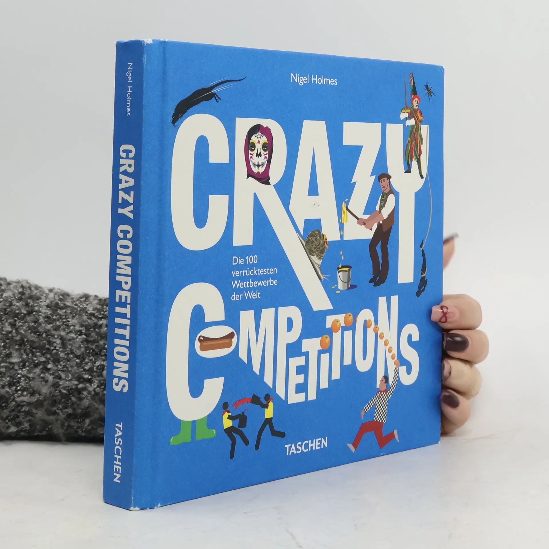Der Wunsch, sich mit anderen zu messen, ist dem Menschen offenbar in die Wiege gelegt. Ob es darum geht, gefrorene Ratten durch die Luft zu schleudern oder aus Bierdosen Boote zu bauen, Schnecken beim Wettrennen anzufeuern, Hotdogs im Akkord zu verschlingen oder im Torfmoor zu schnorcheln, nichts ist zu absurd, als dass Menschen nicht bereit wären, sich für die sprichwörtlichen 15 Minuten Ruhm zum kompletten Deppen zu machen. Der britisch-amerikanische Grafiker, Schriftsteller und Theoretiker Nigel Holmes hat sich für Crazy Competitions auf eine irrwitzig schräge Weltreise begeben, um die obskursten und skurrilsten Wettkämpfe mit der gebotenen Nüchternheit zu dokumentieren und grafisch anschaulich aktenkundig zu machen. Seine globale Studie birgt bei allem Irrsinn auch eine tröstliche Gewissheit: Im Spleen und der Bereitschaft zum reinen Blödsinn zeigt sich die Welt auf wundersame Weise friedlich vereint: Wer mit Thunfisch wirft, schießt nicht.