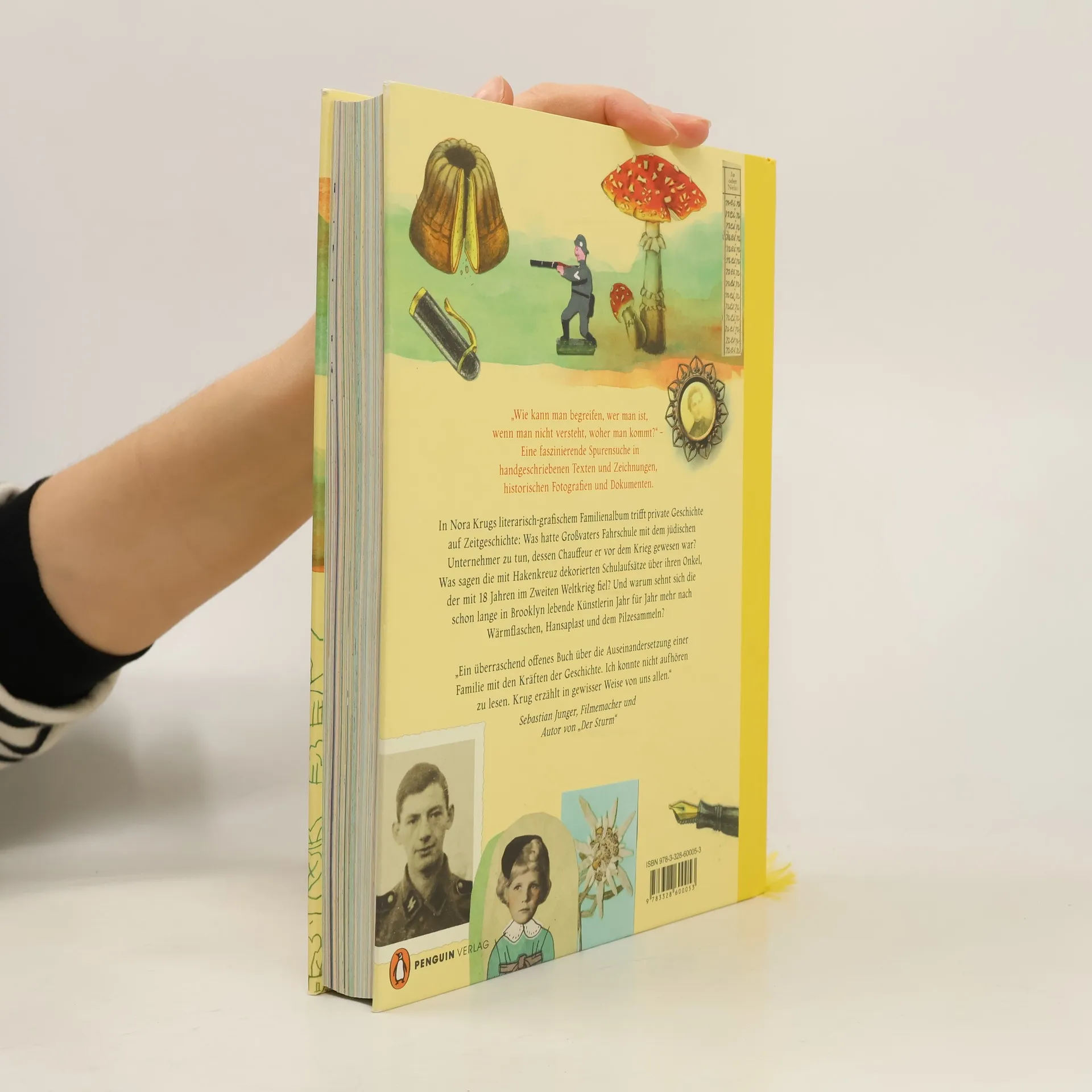 Erneut nominiert für den Deutschen Jugendbuchpreis – Evangelischer Buchpreis – Förderpreis der Stadt Aalen – SWR-Bestenliste – Tagesspiegel-Bestenliste Comics – Silbermedaille der »Society of Illustrators« – Goldmedaille des Art Director Clubs USA – NBCC Award – Nominiert für den Grand-Prix des Comicfestivals Angouleme Sie lebt seit fast zwanzig Jahren in New York, ist verheiratet mit einem amerikanischen Juden und fühlt sich deutscher als jemals zuvor. Woher kommt das? Und wer ist sie eigentlich? Die preisgekrönte, 1977 in Karlsruhe geborene Autorin und Illustratorin Nora Krug fragt sich, was Heimat für sie bedeutet, und unternimmt eine literarisch-grafische Spurensuche in der Vergangenheit ihrer Familie: Was hatte Großvaters Fahrschule mit dem jüdischen Unternehmer zu tun, dessen Chauffeur er vor dem Krieg gewesen war? Was sagen die mit Hakenkreuzen dekorierten Schulaufsätze über ihren Onkel, der mit 18 Jahren im Zweiten Weltkrieg fiel? Wie kann man verstehen, wer man ist, wenn man nicht weiß, woher man kommt? Ihre gezeichneten und handgeschriebenen Bildergeschichten fügt Krug mit Fotografien, Archiv- und Flohmarktfunden zu einem völlig neuen Ganzen zusammen. »Heimat« ist ein einzigartiges Erinnerungskunstwerk, in dem Familiengeschichte auf Zeitgeschichte trifft. Ein Graphic Memoir, lebendig, wahr und poetisch erzählt. Ausstattung: mit Abb., durchgehend 4c