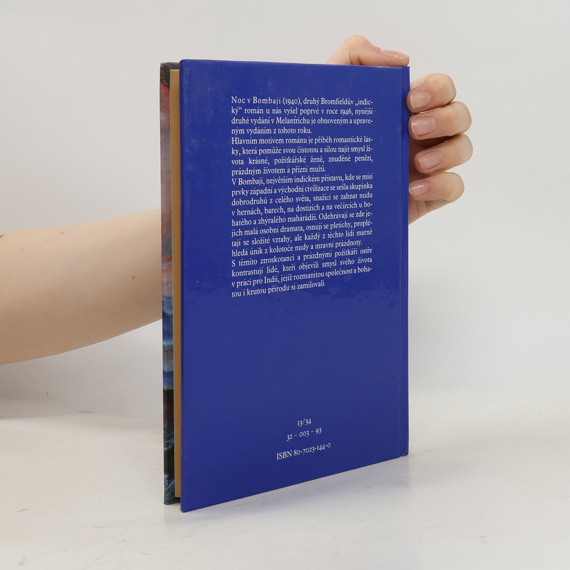 Noc v Bombaji (1940), druhý Bromfieldův "indický" román u nás vyšel poprvé v roce 1946, nynější druhé vydání v Melantrichu je obnoveným a upraveným vydáním z tohoto roku. Hlavním motivem románu je příběh romantické lásky, která pomůže svou čistotou a silou najít smysl života krásné, požitkářské ženě, znuděné penězi, prázdným životem a přízní mužů. V Bombaji, největším indickém přístavu, kde se mísí prvky západní a východní civilizace se sešla skupinka dobrodruhů z celého světa, snažící se zahnat nudu v hranách, barech, na dostizích a na večírcích u bohatého a zhýralého mahárádži. Odehrávají se zde jejich malá osobní dramata, osnují se pletichy, proplétají se složité vztahy, ale každý z těchto lidí hledá únik z kolotoče nudy a mravní prázdnoty. S těmito ztroskotanci a prázdnými požitkáři ostře kontrastují lidé, kteří objevili smysl svého života v práci pro Indii, jejíž rozmanitou společnost a bohatou i krutou přírodu si zamilovali.