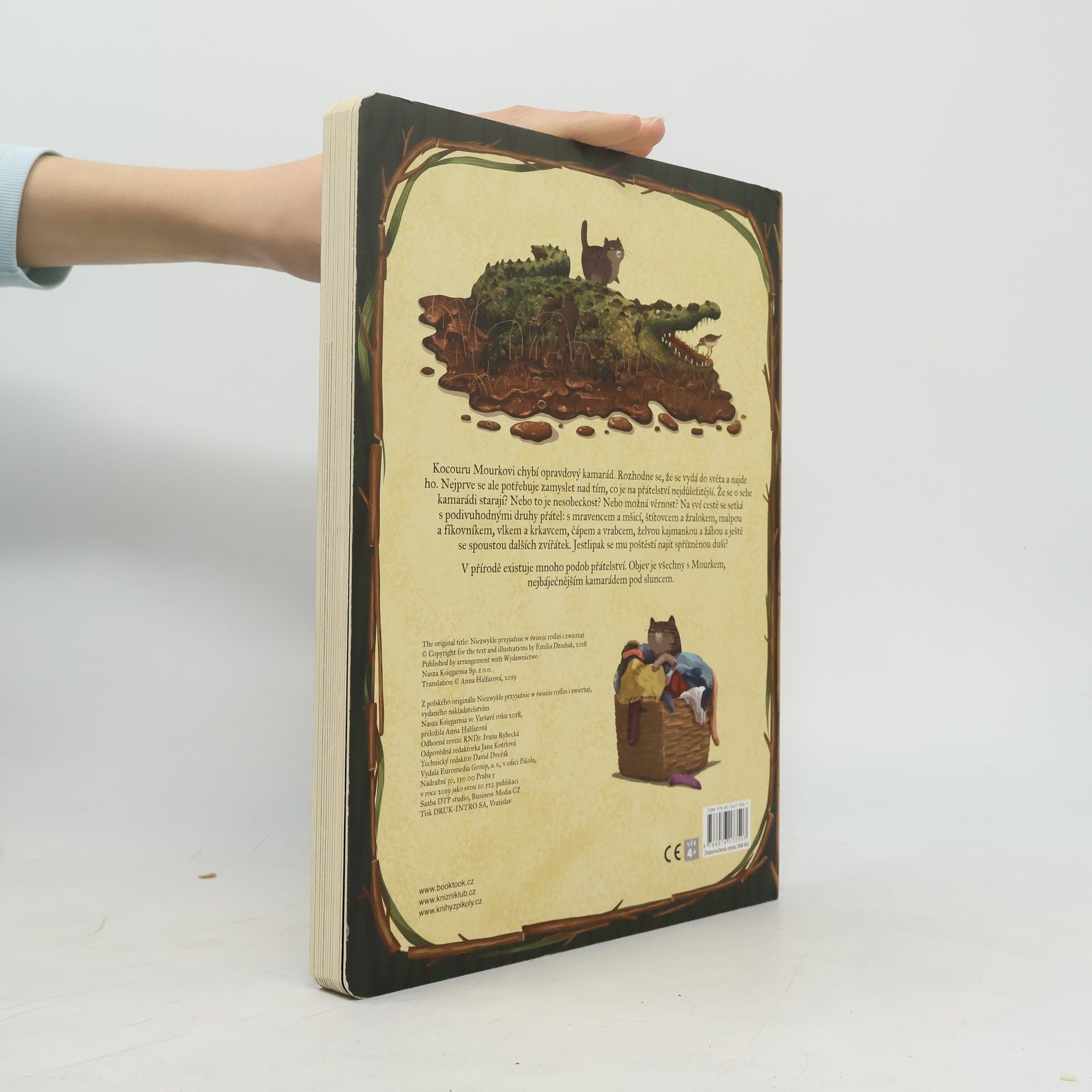 Kdo se ve světě přírody kamarádí? Kdo si pomáhá? Kdo komu připravuje snídani? Kdo koho s péčí ohryzává? Kocour Mourek provede nejmenší děti úžasným světem přírody, ve kterém vznikají neobyčejná a vzácná přátelství mezi zvířátky a rostlinkami, rostlinkami a houbami a houbami a zvířátky. Děti se s kocouřím kamarádem vydají po stopách přátelství, která jsou mnohdy překvapující, a zábavnou formou se dozvědí spoustu zajímavostí. Krásné velkoformátové leporelo s láskou nakreslila oblíbená ilustrátorka Emilia Dziubaková. Leporelo je určeno dětem od 4 let.