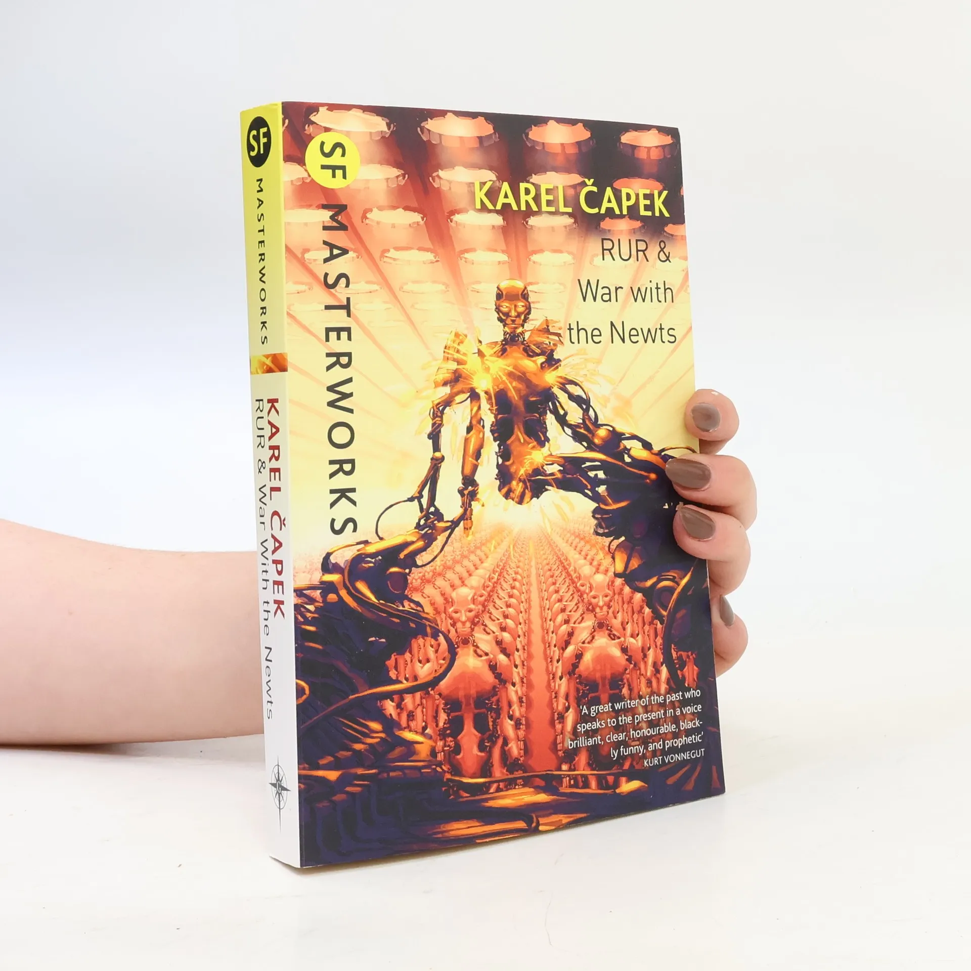 Two dystopian satires from one of the most distinguished writers of 20th-century European science fiction. R.U.R. is the work that first introduced the word 'robot' into popular usage. Written against the background of the rise of Nazism, War With the Newts concerns the discovery in the South Pacific of a sea-dwelling race, which is enslaved and exploited by mankind. In time they rebel, laying siege to the strongholds of their former masters in a global war for supremacy. R.U.R., or Rossum's Universal Robots, seen by many as a modern interpretation of the 'golem' myth, is regarded as the most important play in the history of SF. It introduced the word 'robot' and gave the genre one of its most enduring tropes.