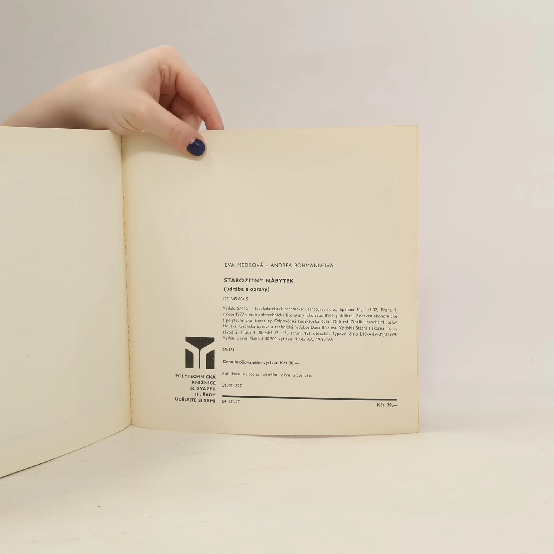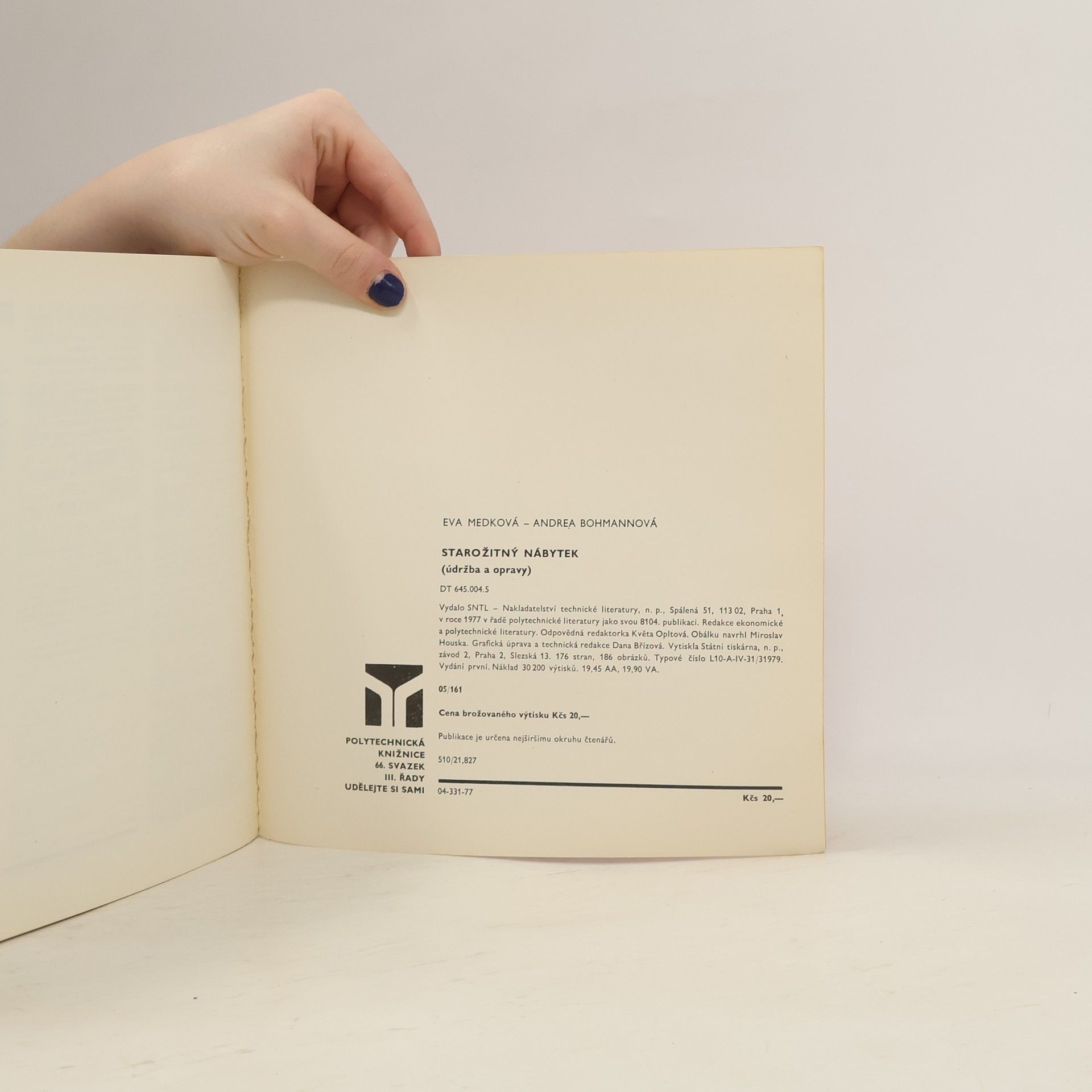Kniha seznamuje s údržbou a opravami starožitného nábytku. Úvodní část je věnována stručnému popisu jednotlivých slohů, od starověku až do nové doby. Těžištěm knihy jsou praktické návody na opravy a údržbu. Jsou zde popsány téměř všechny techniky z hlediska povrchových úprav, oprav a renovací a uveden potřebné materiály a nářadí. Výklad je provázen bohatým obrazovým materiálem.