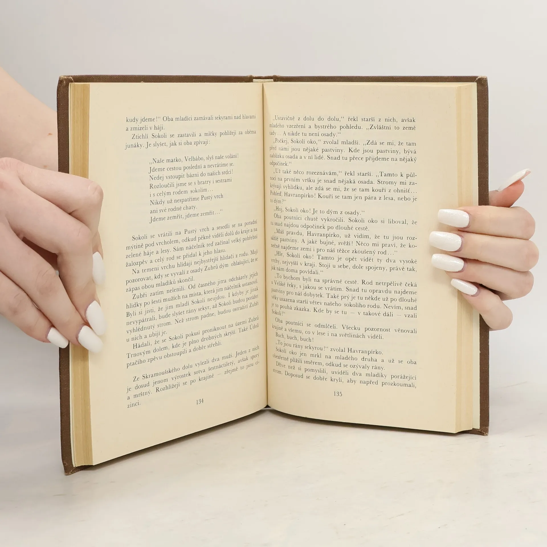 „Můj otec mě zaslíbil tomu, kdo zabije zlého medvěda, a ty, Bobře, nezapomeň, že já dobře vím, kdože medvědu zasadil smrtelnou ránu. Tys to nebyl – tys jen medvěda dorazil, když těžce raněný spadl ze skály, nemluv tedy o hrdinském skutku. Čí to byl oštěp, který trčel hluboko zabodnutý v medvědově pleci? Tvůj oštěp, Bobře, to nebyl! Ten medvěd nebyl tvůj, ani já tedy nebudu tvá!“... celý text