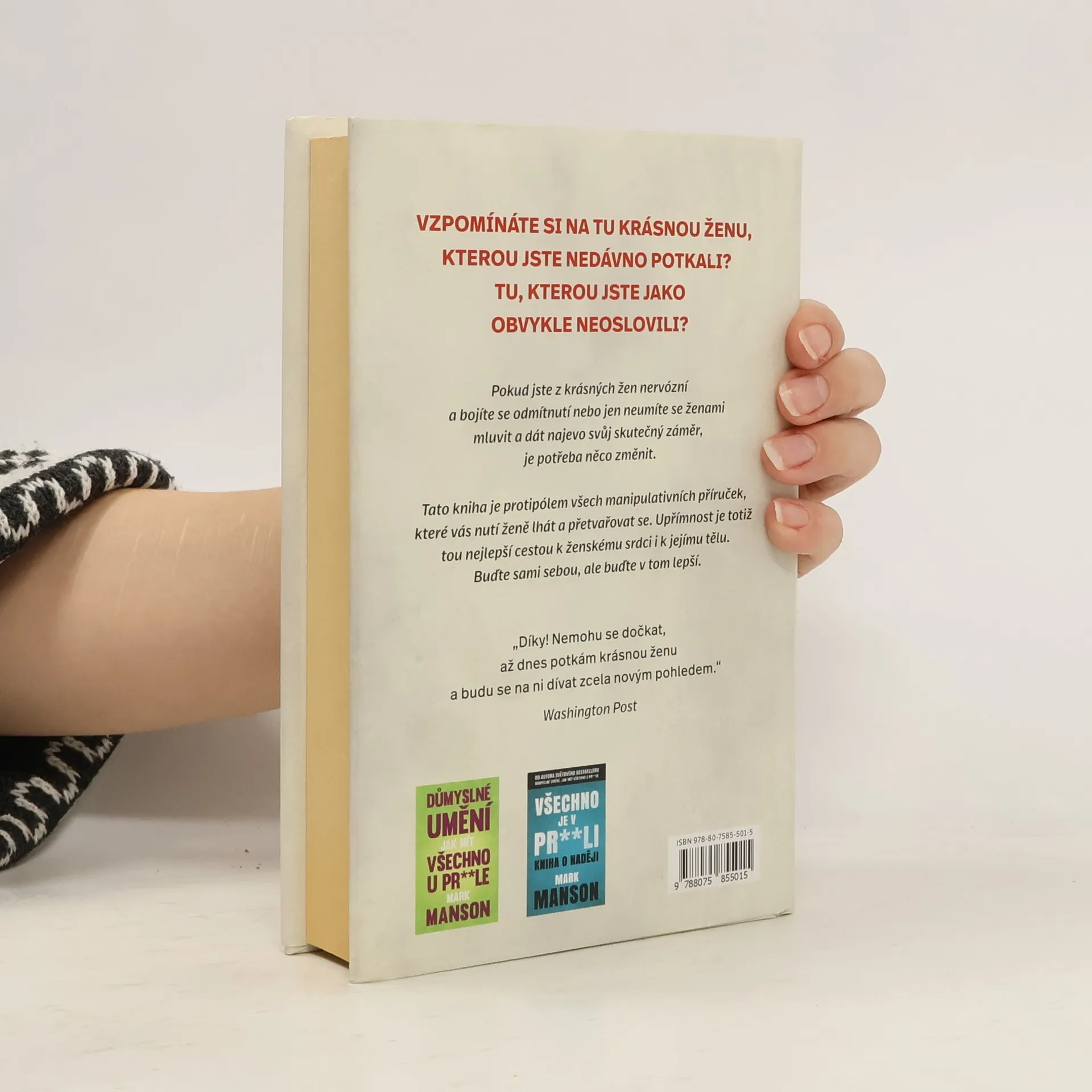 Vzpomínáte si na tu krásnou ženu, kterou jste nedávno potkali? Tu, kterou jste jako obvykle neoslovili? Pokud jste z krásných žen nervózní a bojíte se odmítnutí, nebo jen neumíte se ženami mluvit a dát najevo svůj skutečný záměr, je potřeba něco změnit. Spisovatel a blogger Mark Manson přináší ucelený průvodce mužskou atraktivitou, který vám pomůže pochopit, co ženy doopravdy přitahuje, využívat odmítnutí ve svůj prospěch a nebát se projevit svůj zájem tak, abyste nepůsobili jako slizouni. Na rozdíl od jiných knih vám nenabídne „zaručené“ hlášky a taktiky, které by měly fungovat, ale nefungují – namísto toho vám vysvětlí, že zranitelnost znamená sílu a že v opravdovosti je ten největší dar, který ženy dokáží ocenit. Poradí vám, jak flirtovat, jak se správně obléknout a jak změnit svůj svět tak, abyste byli nejen sebevědomí a odhodlaní, ale také přitažliví pro něžné pohlaví. Tato kniha je protipólem všech manipulativních příruček, které vás nutí ženě lhát a přetvařovat se, neboť upřímnost je tou nejlepší cestou k jejímu srdci i k jejímu tělu. Buďte sami sebou, ale buďte v tom lepší.