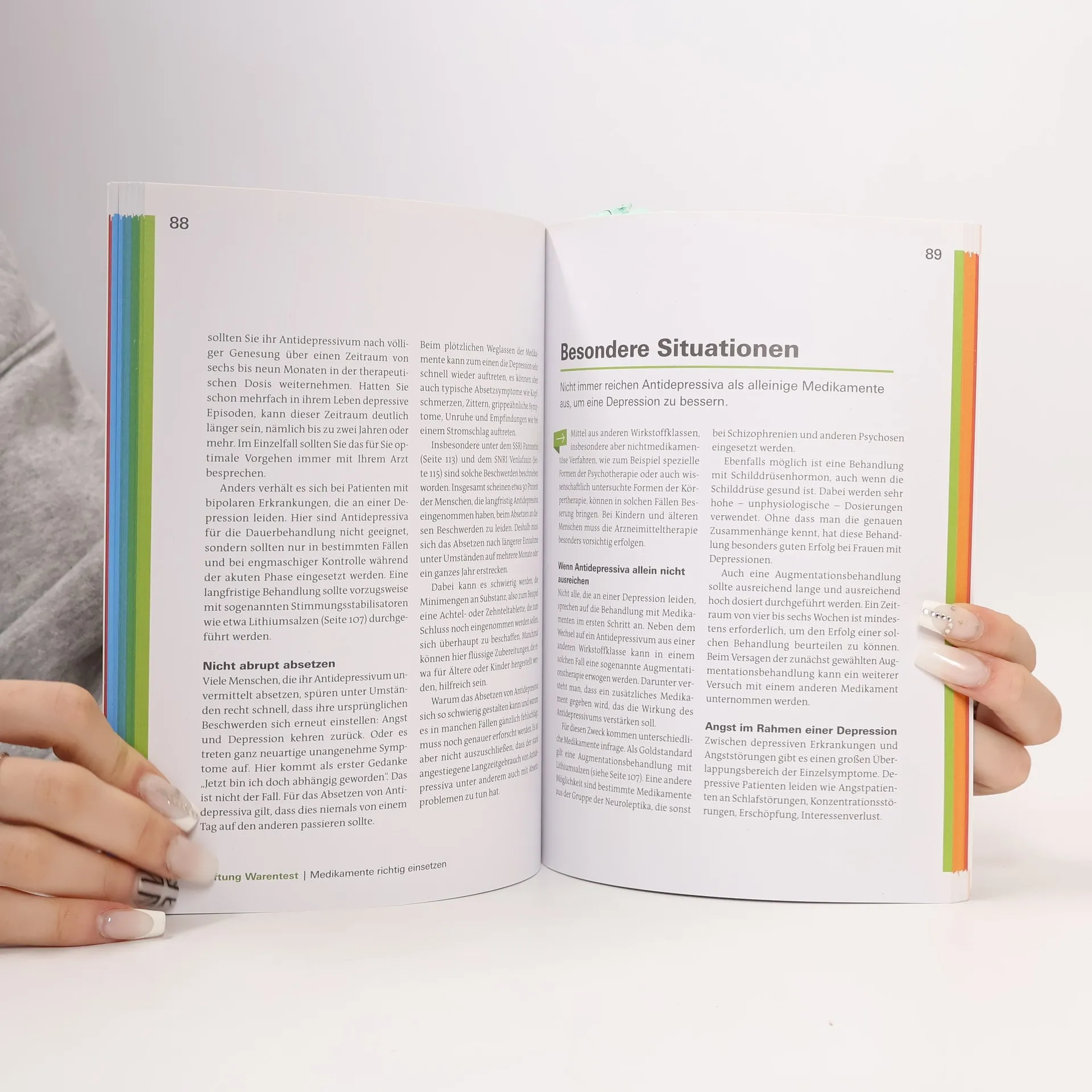 Umfassende Informationen aus unabhängiger Quelle, Bewertung aller wichtigen Medikamente sowie ein ausführlicher Ratgeberteil: Das alles bietet dieser Ratgeber, denn Antidepressiva sind zwar oft der Schlüssel für eine erfolgreiche Behandlung, aber nicht jedes Medikament ist therapeutisch wirksam und sinnvoll. Vertrauen Sie auf das Urteil der Experten von Stiftung Warentest und erfahren Sie, welche medikamentöse Behandlung die Wissenschaft derzeit für die erfolgreichste hält. In übersichtlichen Tabellen mit Bewertungen von „geeignet“ bis „wenig geeignet“ sind sowohl verschreibungspflichtige als auch rezeptfreie Arzneimittel beurteilt. Im ausführlichen Ratgeberteil werden dringende Fragen von Patienten beantwortet: Brauche ich wirklich Medikamente? Wann kann ich mit den Medikamenten wieder aufhören? Kann mir Psychotherapie helfen? Was Sie selbst für sich tun können, welchen Stellenwert die ärztliche oder psychotherapeutische Behandlung hat und wann Antidepressiva notwendig werden, das alles wird in einer detaillierten Therapieberatung verdeutlicht.
