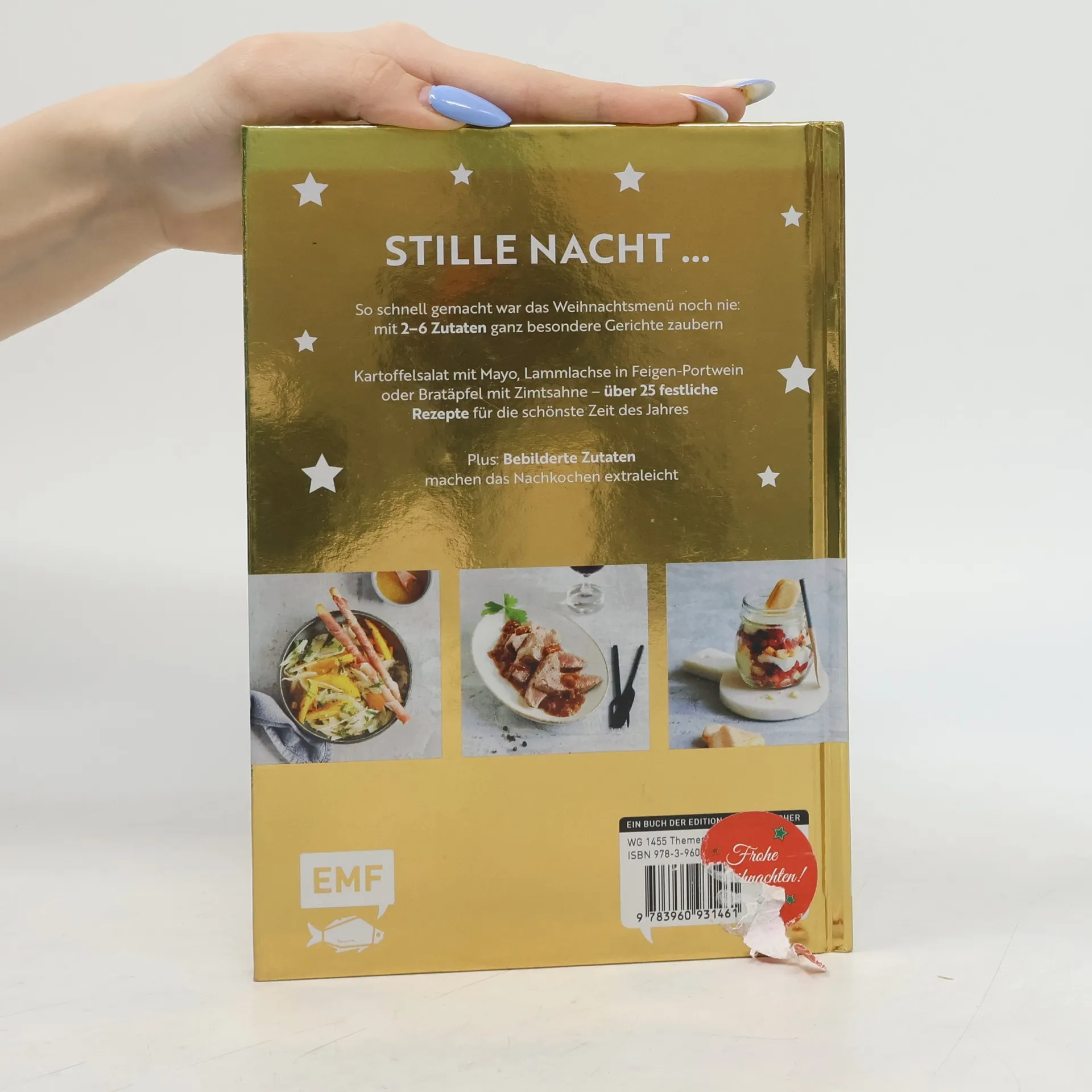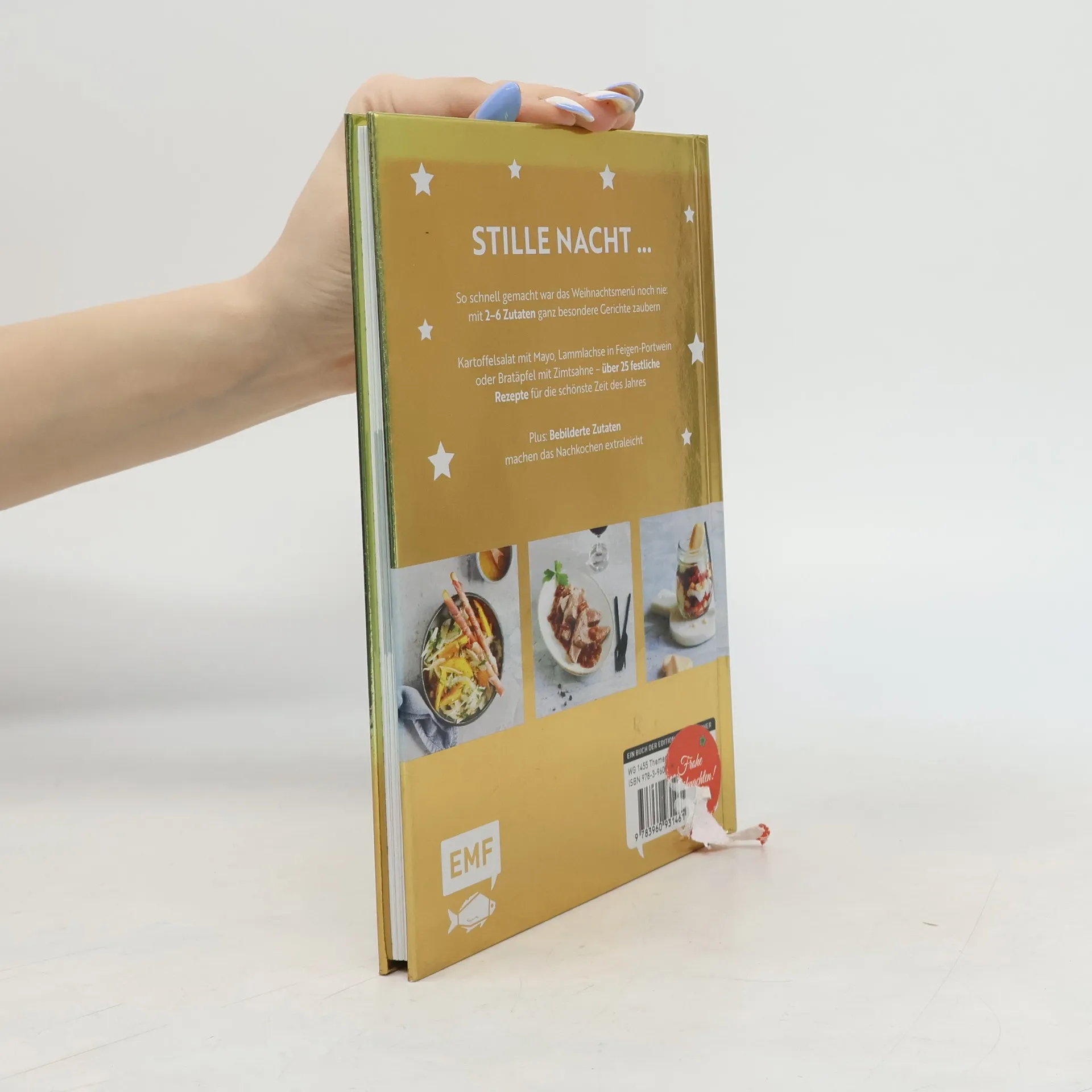 Entspannt festlich kochen – so einfach zubereitet war das Weihnachtsessen noch nie! Damit die schönste Zeit des Jahres nicht in Stress ausartet, finden sich in „Einfach Weihnachtsrezepte“ über 25 spannende Rezeptideen fürs Fest. Egal, ob Vorspeisen oder Hauptgerichte, ob klassische Beilagen oder Desserts – alle Gerichte lassen sich mit nur maximal 6 Zutaten im Handumdrehen herstellen und so untereinander kombinieren, dass köstliche Festtags-Menüs entstehen. Unter den Rezepten finden sich der klassische Gänsebraten ebenso wie Rotkohl mit Äpfeln und Orangen-Fenchelsalat mit Schinken-Grissini. Bebilderte Zutaten und eine gut lesbare Schriftgröße bringen besonderen Komfort beim Nachkochen – mit wenig Aufwand und maximalem Genuss wird Weihnachten ein Fest!