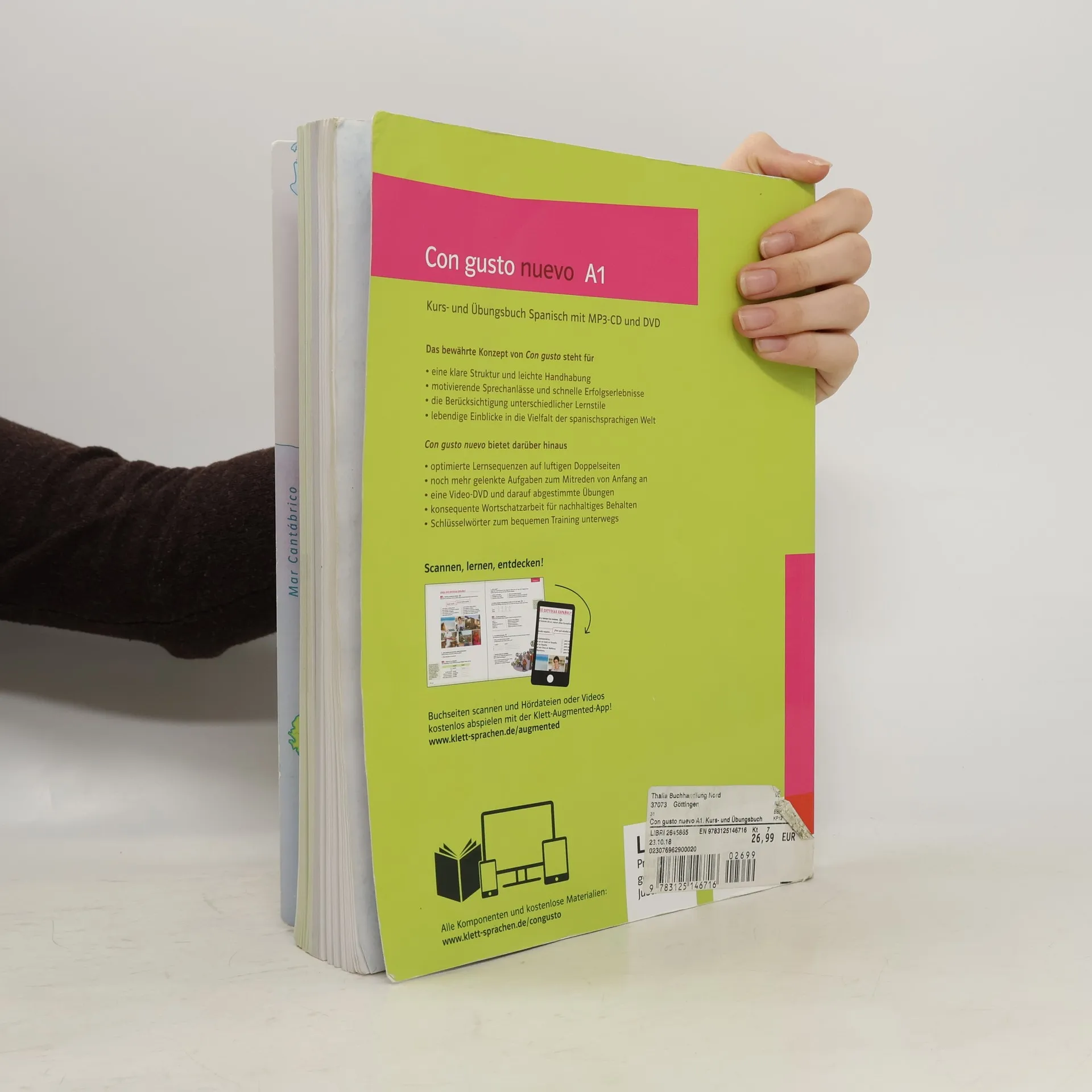 Con gusto nuevo - die Nummer 1 mit verbesserter Rezeptur! Die Neubearbeitung Con gusto nuevo bewahrt die Qualitäten seines Vorgängers: vom transparenten Lektionsaufbau über die motivierenden Sprechanlässe bis zum Eintauchen in die spanischsprachige Welt – das alles in Verbindung mit einer behutsamen Reduzierung der Stoffmenge und noch mehr praktischem Training. Freuen Sie sich auf: - Optimierte Lernsequenzen auf luftigeren Doppelseiten - Verstärkte Wortschatzarbeit - Charmante Videosequenzen mit Untertitel-Option (online) - Transparenter Lektionsaufbau - Motivierende Sprechanlässe von Anfang an - Eintauchen in die spanischsprachige Welt