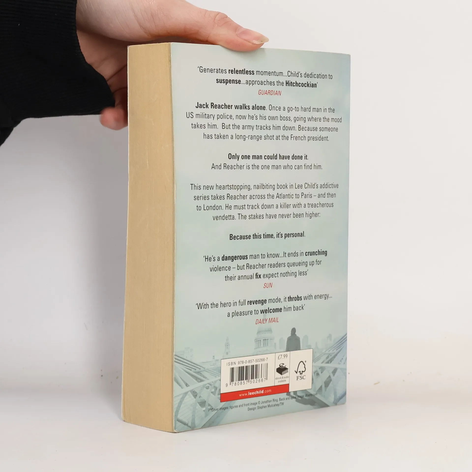 Jack Reacher walks alone. Once a go-to hard man in the US military police, now heâe(tm)s a drifter of no fixed abode. But the army tracks him down. Because someone has taken a long-range shot at the French president. Only one man could have done it. And Reacher is the one man who can find him. This new heartstopping, nailbiting book in Lee Childâe(tm)s number-one bestselling series takes Reacher across the Atlantic to Paris âe" and then to London. The stakes have never been higher - because this time, itâe(tm)s personal.