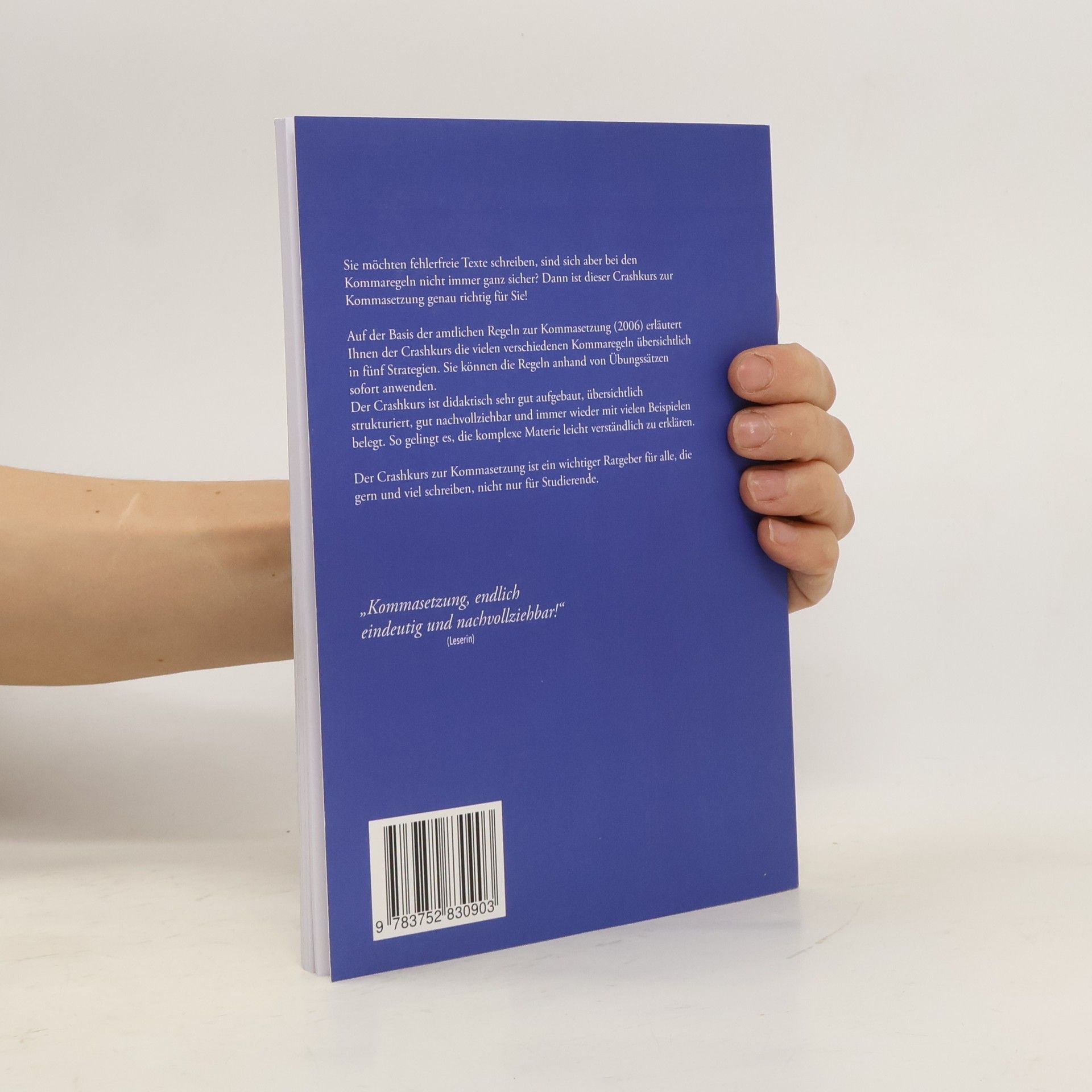 Möchten Sie fehlerfreie Texte schreiben, sind sich aber bei den Kommaregeln unsicher? Dieser Crashkurs zur Kommasetzung bietet Ihnen die perfekte Lösung! Basierend auf den amtlichen Regeln zur Kommasetzung von 2006 werden die verschiedenen Kommaregeln übersichtlich in fünf Strategien erläutert. Sie können die Regeln sofort anhand von Übungssätzen anwenden. Der Kurs ist didaktisch gut strukturiert und bietet viele Beispiele, um die komplexe Materie verständlich zu erklären. Mit diesem Crashkurs können Sie schnell und einfach die Kommaregeln erlernen, über 50 Übungssätze nutzen, um Fortschritte zu erzielen, und bei Unsicherheiten jederzeit nachschlagen. Kurze Zusammenfassungen am Ende jedes Kapitels bieten einen schnellen Überblick. Der erste Teil reduziert die Regeln und konzentriert sich auf Schlüsselwörter, um fehlende Kommas schnell zu erkennen. So wird das Erlernen der Regeln vereinfacht, und Sie können rasch fehlerfrei schreiben. Der zweite Teil ermöglicht es Ihnen, bei Bedarf Details nachzuschlagen und die Regeln vertieft zu lernen. Der dritte Teil umfasst 30 Übungssätze mit Lösungen zu den verschiedenen Regeln. Dieser Crashkurs ist ein wertvoller Ratgeber für alle, die gerne und viel schreiben, nicht nur für Studierende.