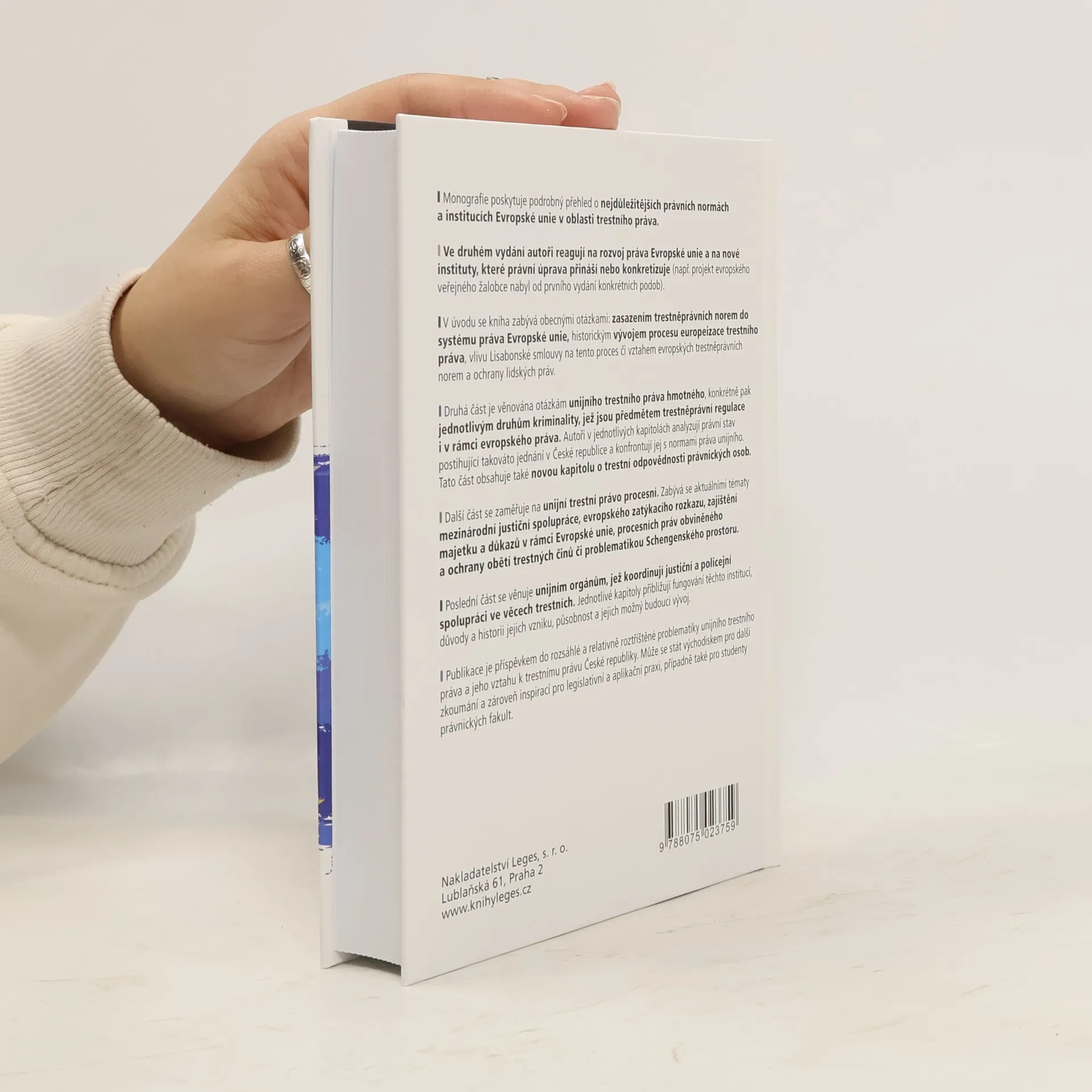 Monografie poskytuje podrobný přehled o klíčových právních normách a institucích Evropské unie v oblasti trestního práva. V druhém vydání autoři reagují na vývoj práva EU a nové instituty, jako je projekt evropského veřejného žalobce, který se od prvního vydání konkretizoval. Úvod se zaměřuje na zasazení trestněprávních norem do systému práva EU, historický vývoj europeizace trestního práva, vliv Lisabonské smlouvy a vztah mezi evropskými normami a ochranou lidských práv. Druhá část se věnuje unijnímu trestnímu právu hmotnému, analyzující různé druhy kriminality a jejich regulaci v rámci evropského práva, přičemž porovnává právní stav v České republice s unijními normami. Obsahuje novou kapitolu o trestní odpovědnosti právnických osob. Další část se zaměřuje na unijní trestní právo procesní, diskutující mezinárodní justiční spolupráci, evropský zatýkací rozkaz, zajištění majetku a důkazů, procesní práva obviněných a ochranu obětí trestných činů. Poslední část se věnuje unijním orgánům, které koordinují justiční a policejní spolupráci v trestních věcech, přibližující jejich fungování, historii vzniku a možný budoucí vývoj. Publikace přispívá k problematice unijního trestního práva a jeho vztahu k trestnímu právu České republiky, slouží jako východisko pro další zkoumání a inspiraci pro legislativní praxi a studenty právnických fakult.