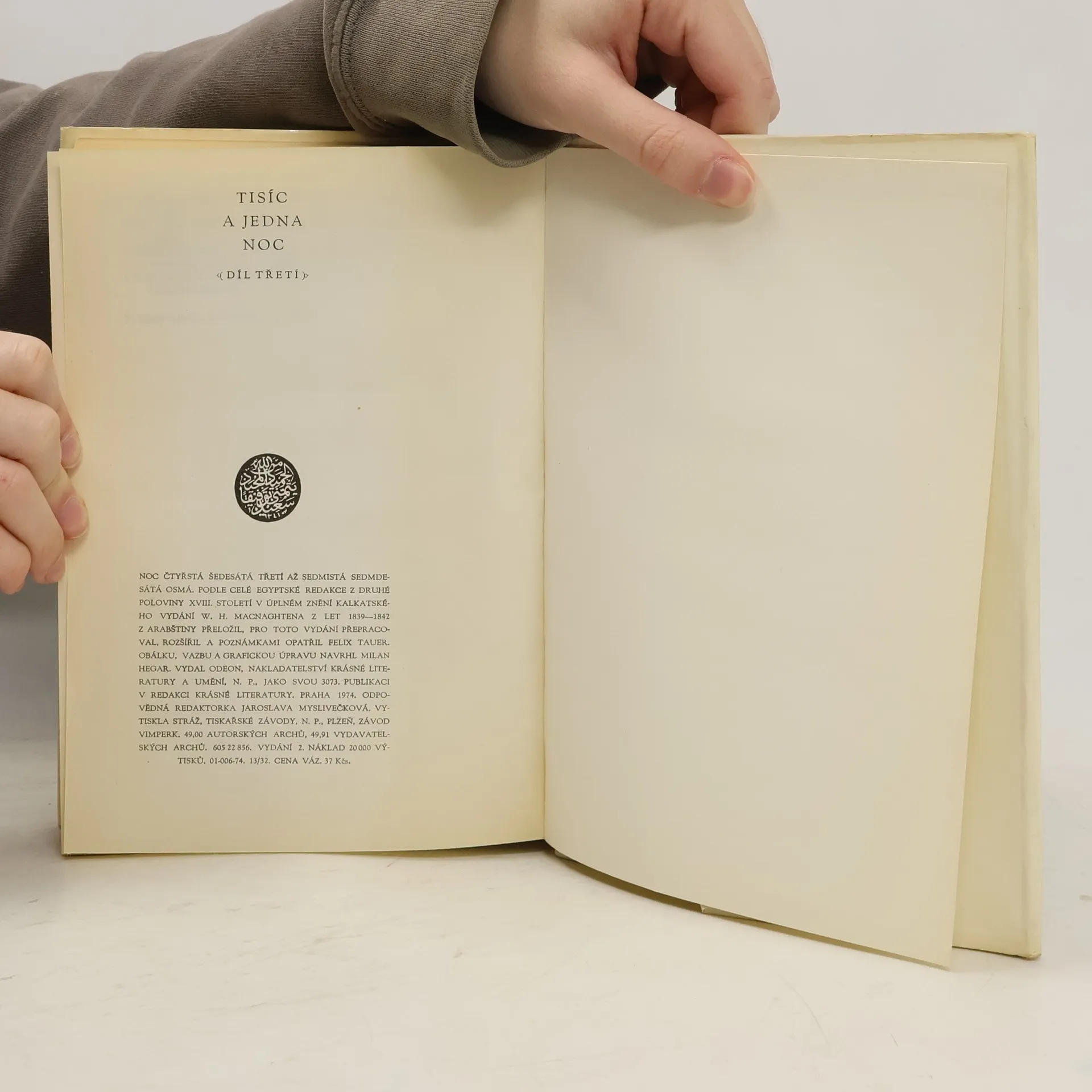Třetí kniha z pěti. Příběhy, které vyprávěla Šahrazáda králi Šahzamánovi třetí svazek obsahuje vyprávění noci 463 až 778 – podle egyptské redakce z druhé poloviny 18. století v úplném znění kalkatského vydání – vyprávění, která se stala nedílnou součástí světového literárního dědictví a současně i inspirací pro další díla.