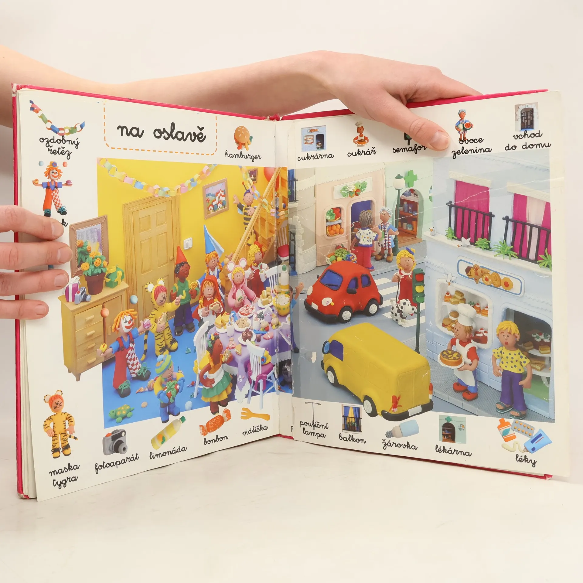 V této barevné knize jsou do detailů znázorněny předměty, situace a místa, se kterými se děti setkávají v každodenním životě. Všechny předměty byly nejprve vymodelované z plastelíny a pak vyfotografované, což zvyšuje jejich atraktivitu. Děti si užijí spoustu zábavy při poznávání světa a zároveň se naučí nová slova. Rovněž tak může být kniha vhodná jako předloha pro výrobu předmětů, postaviček či zvířátek z plastelíny.
