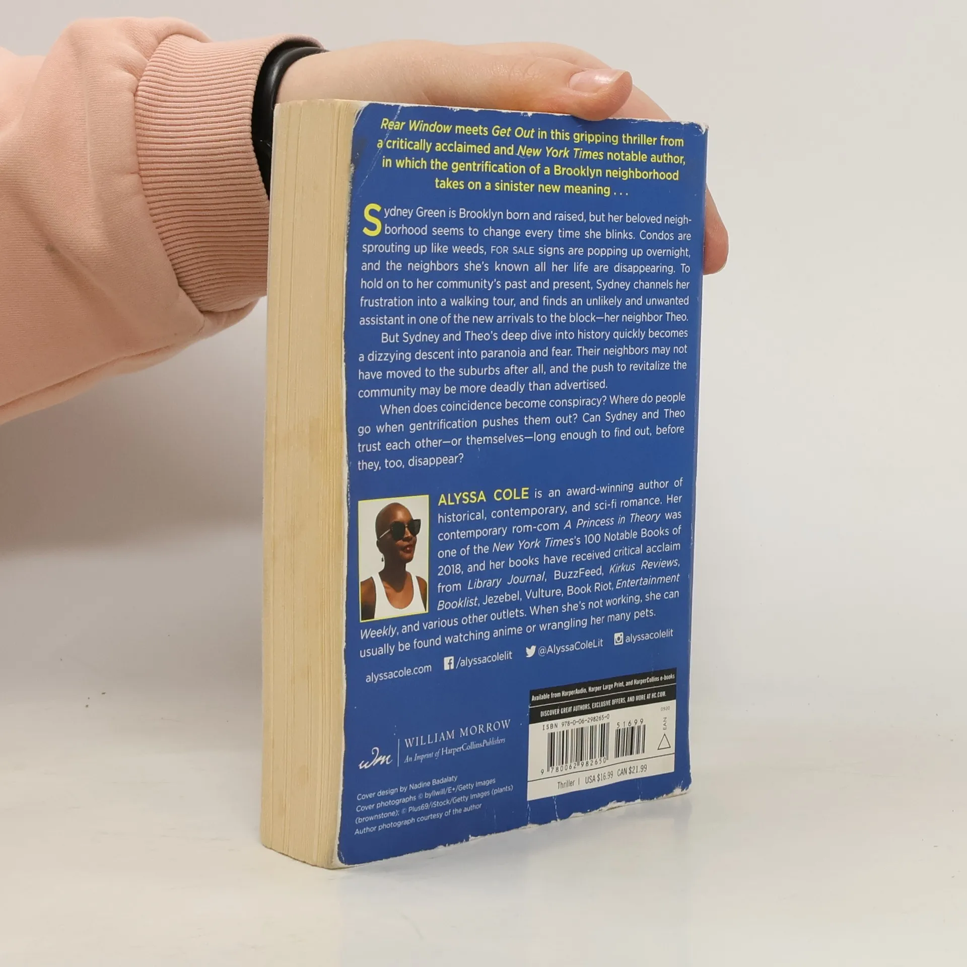 Rear Window meets Get Out in this gripping thriller from a critically acclaimed and New York Times Notable author, in which the gentrification of a Brooklyn neighborhood takes on a sinister new meaning... Sydney Green is Brooklyn born and raised, but the neighborhood she loves is being erased before her very eyes. FOR SALE signs are popping up everywhere, and the neighbors she's known all her life are disappearing. To preserve the past, Sydney channels her frustration into a walking tour: "Displaced: A People's History of Brooklyn," and finds an unlikely and unwanted assistant in one of the new arrivals to the block - her neighbor Theo. But Sydney and Theo's deep dive into history quickly becomes a dizzying descent into paranoia and fear. Their neighbors may not have moved to the suburbs after all, and the efforts to revitalize the community may be more deadly than advertised. When does coincidence become conspiracy? Where do people go when gentrification pushes them out? Can Sydney and Theo trust each other - or themselves - long enough to find out, before they too disappear - permanently?