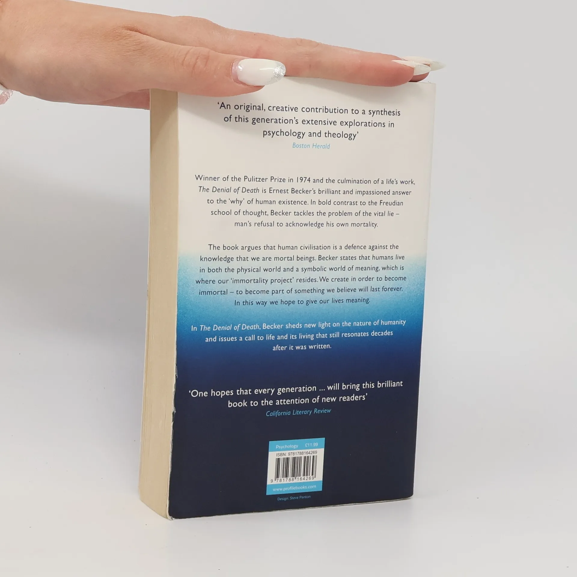Winner of the Pulitzer prize in 1974 and the culmination of a life's work, The Denial of Death is Ernest Becker's brilliant and impassioned answer to the 'why' of human existence. In bold contrast to the predominant Freudian school of thought, Becker tackles the problem of the vital lie - man's refusal to acknowledge his own mortality. The book argues that human civilisation is a defence against the knowledge that we are mortal beings. Becker states that humans live in both the physical world and a symbolic world of meaning, which is where our 'immortality project' resides. We create in order to become immortal - to become part of something we believe will last forever. In this way we hope to give our lives meaning.In The Denial of Death, Becker sheds new light on the nature of humanity and issues a call to life and its living that still resonates decades after it was written.