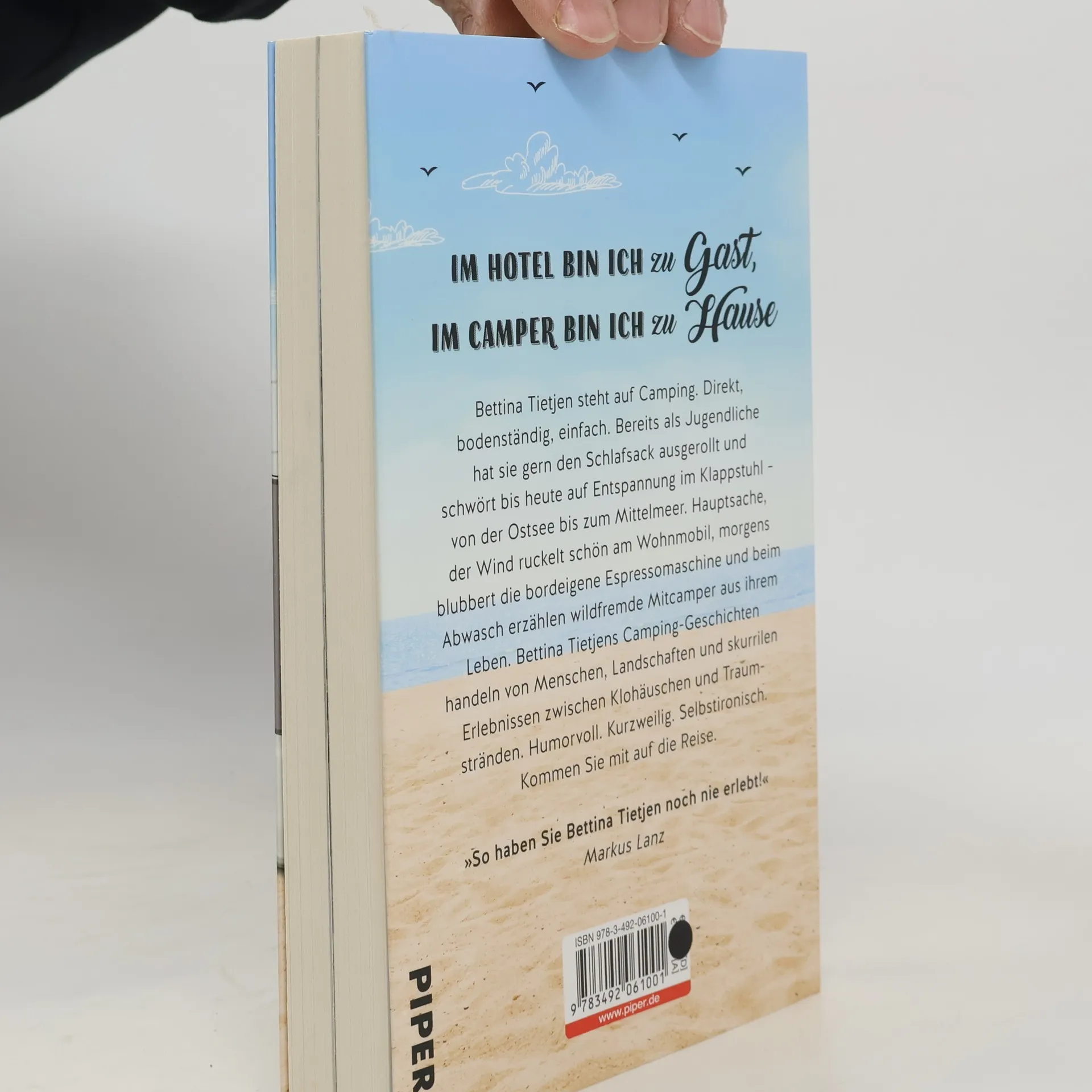 Im Hotel bin ich zu Gast, im Camper bin ich zu Hause Bettina Tietjen steht auf Camping. Direkt, bodenständig, einfach. Bereits als Jugendliche hat sie gern den Schlafsack ausgerollt und schwört bis heute auf die Freiheit unterm Sternenhimmel – von der Ostsee bis zum Mittelmeer. Hauptsache, der Wind ruckelt schön am Wohnmobil, morgens blubbert die bordeigene Espressomaschine und beim Abwasch erzählen wildfremde Mitcamper aus ihrem Leben. Bettina Tietjens Camping-Geschichten handeln von Menschen, von Landschaften und von skurrilen Erlebnissen zwischen Klohäuschen und Traumstränden. Humorvoll. Kurzweilig. Selbstironisch. Kommen Sie mit auf die Reise. Die sympathische Moderatorin und Bestsellerautorin lässt uns hinter die Gardinen ihres Campers blicken.