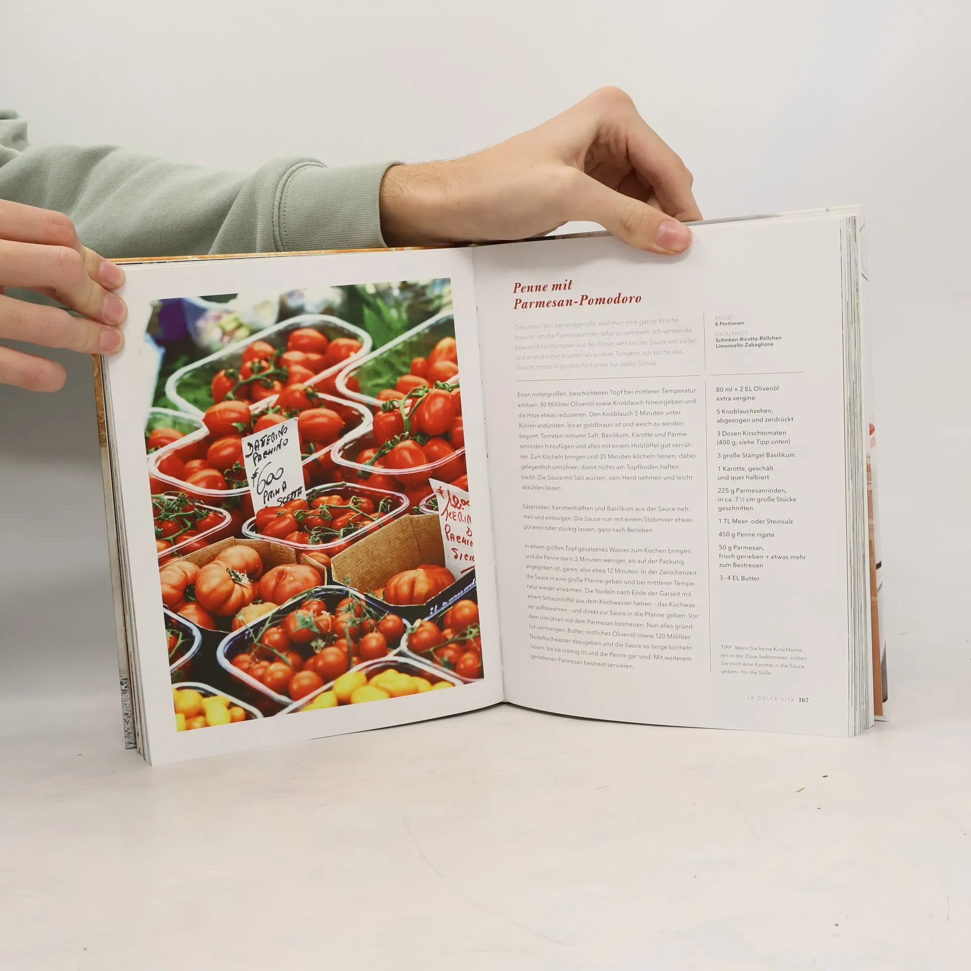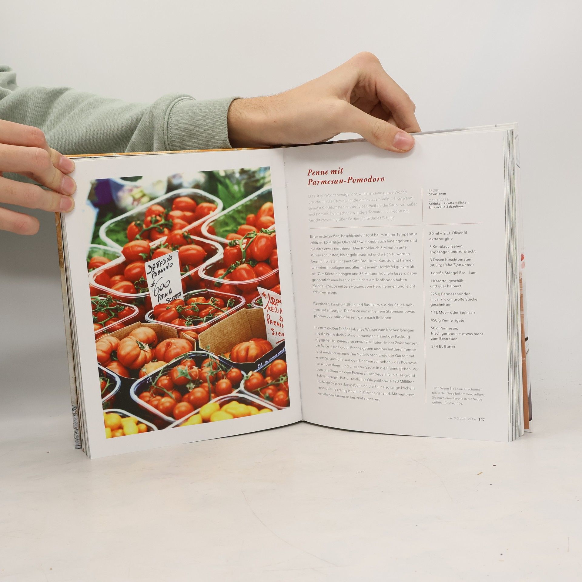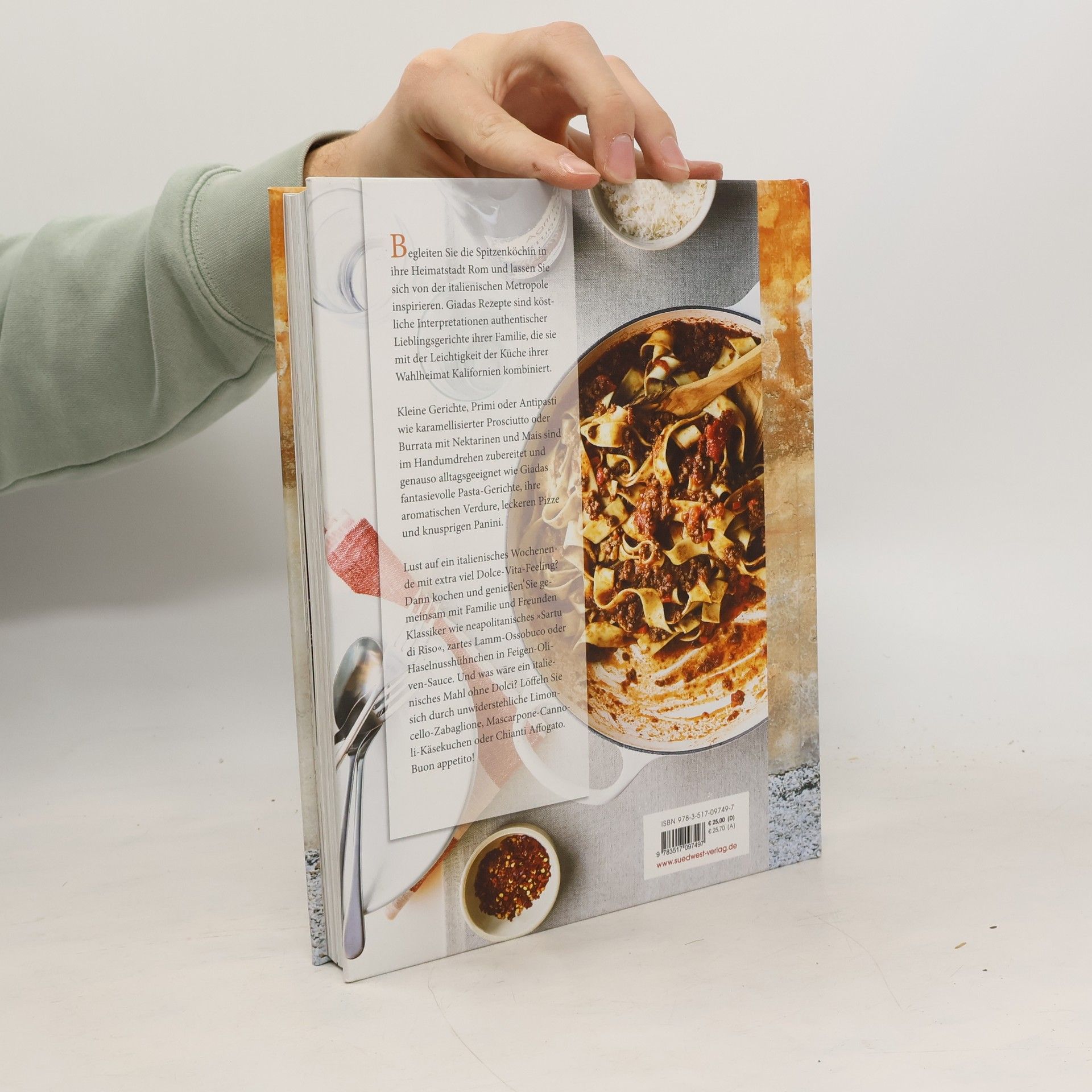 Leichte und gesunde Varianten italienischer Lieblingsgerichte mit einem Hauch »californian-lifestyle« Mit den stimmungsvollen Fotos aus ihrer Heimatstadt Rom, ist Giada de Laurentiis Buch eine genussvolle Reise zu ihren kulinarischen Wurzeln und dem italienischen Lebensstil, der la dolce vita definiert; genial kombiniert mit dem angesagten kalifornischen Touch, der sie zu Amerikas beliebtester italienischer Köchin gemacht hat. Giada de Laurentiis ist bekannt für ihre leichte, gesunde Variante der klassischen italienischen Küche. In diesem Buch erzählt sie, welche Rezepte, Aromen und Geschichten ihren Küchenstil inspiriert haben. Sie stellt authentische Gerichte vor, wie ihre Familie sie seit Jahren zubereitet, die sie aber mit ihren charakteristischen Aromen anreichert und ihnen so einen unverwechselbaren Geschmack verleiht. Genießen Sie gegrillten Schwertfisch mit kandiertem Zitronensalat, Spaghetti mit Chianti und Fava Bohnen, Spargel mit gegrilltem Melonensalat oder einen Fenchel-Upside-Down-Kuchen. Reich bebildert mit großartigen Fotos, gespickt mit Familiengeschichten und gewürzt mit ihren persönlichen Tipps und Ratschlägen für die einfache Zubereitung der über 100 Rezepte für Antipasti, Primi, Secondi sowie verführerischen Dolci. Ausstattung: ca. 130 Farbfotos