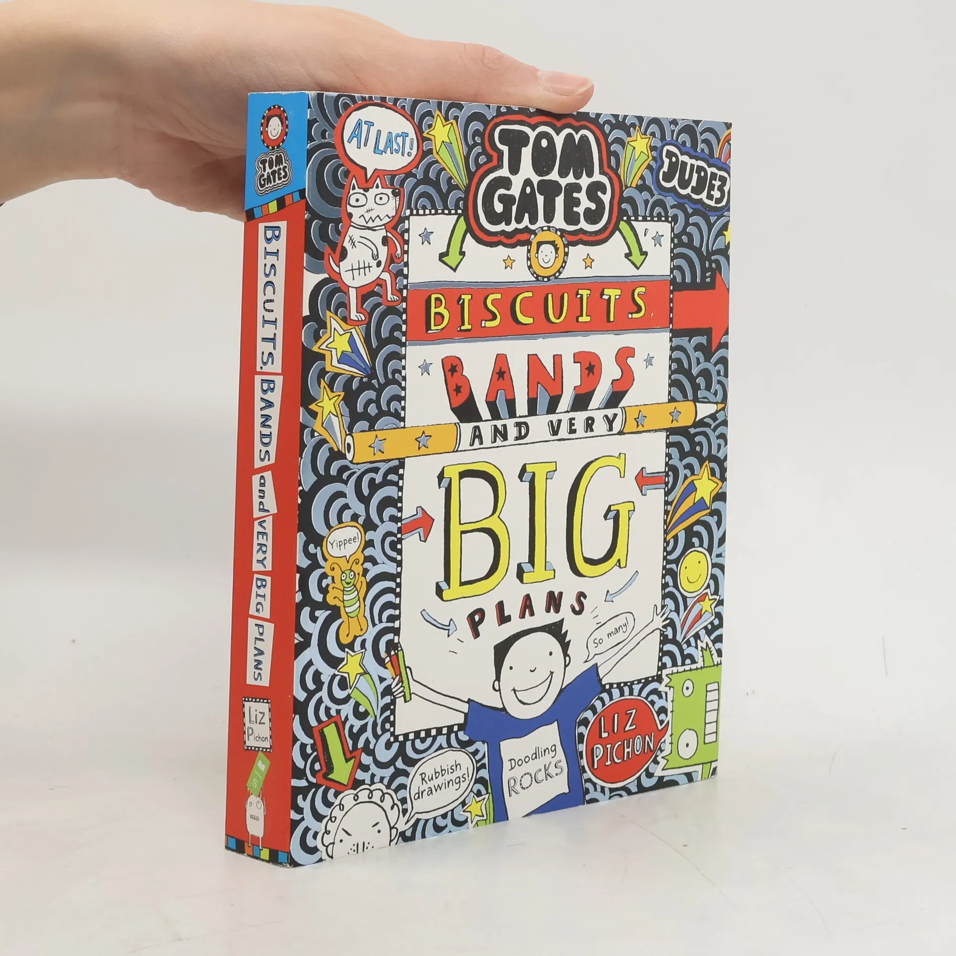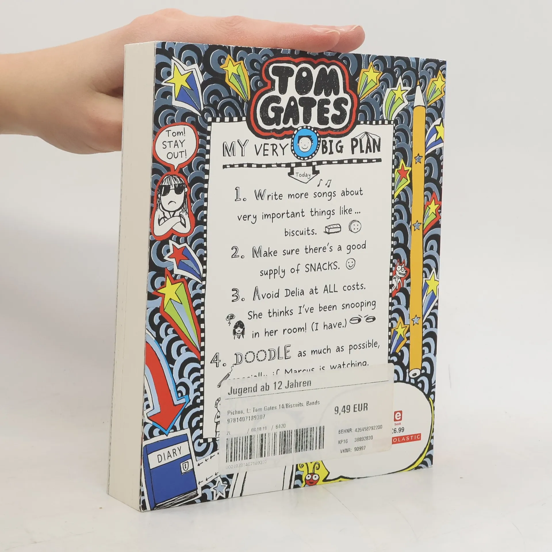 The bestselling fully-illustrated Tom Gates series is backwith the 14th installment! This book is VERY important because it contains BISCUITS, BANDS and all my (doodled) plans to make DogZombies the BEST band in the world. MY VERY BIG PLAN: 1. Write more songs about VERY important things like...... biscuits 2. Make sure there's a good supply of SNACKS for our band practice 3. Avoid Delia at ALL COSTS, she thinks I've been SNOOPING in her room. (I have.) 4. DOODLE as much as possible, especially if Marcus is watching