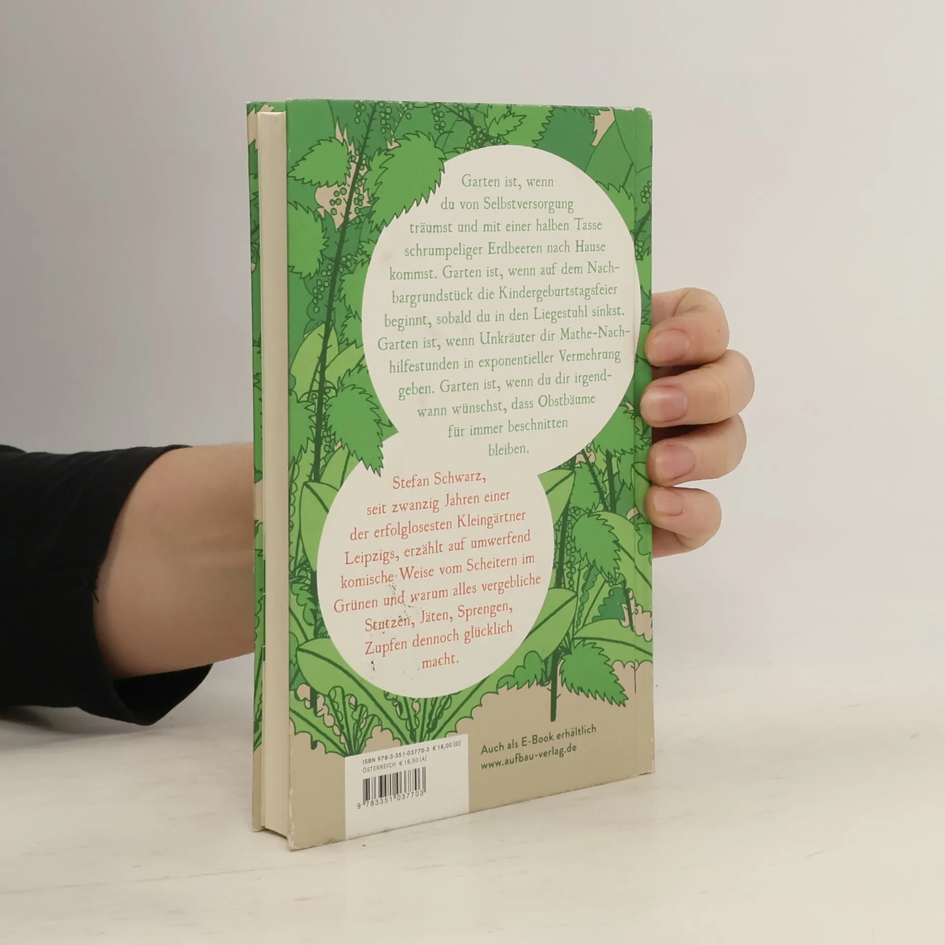 Wenn der grüne Daumen nach unten zeigt. Garten ist, wenn du von Selbstversorgung träumst und mit einer halben Tasse schrumpeliger Erdbeeren nach Hause kommst. Garten ist, wenn auf dem Nachbargrundstück die Kindergeburtstagsfeier beginnt, sobald du in den Liegestuhl sinkst. Garten ist, wenn Unkräuter dir Mathe-Nachhilfestunden in exponentieller Vermehrung geben. Garten ist, wenn du dir irgendwann wünschst, dass Obstbäume für immer beschnitten bleiben. Stefan Schwarz, seit zwanzig Jahren einer der erfolglosesten Kleingärtner Leipzigs, erzählt auf umwerfend komische Weise vom Scheitern im Grünen und warum alles vergebliche Stutzen, Jäten, Sprengen, Zupfen dennoch glücklich macht.