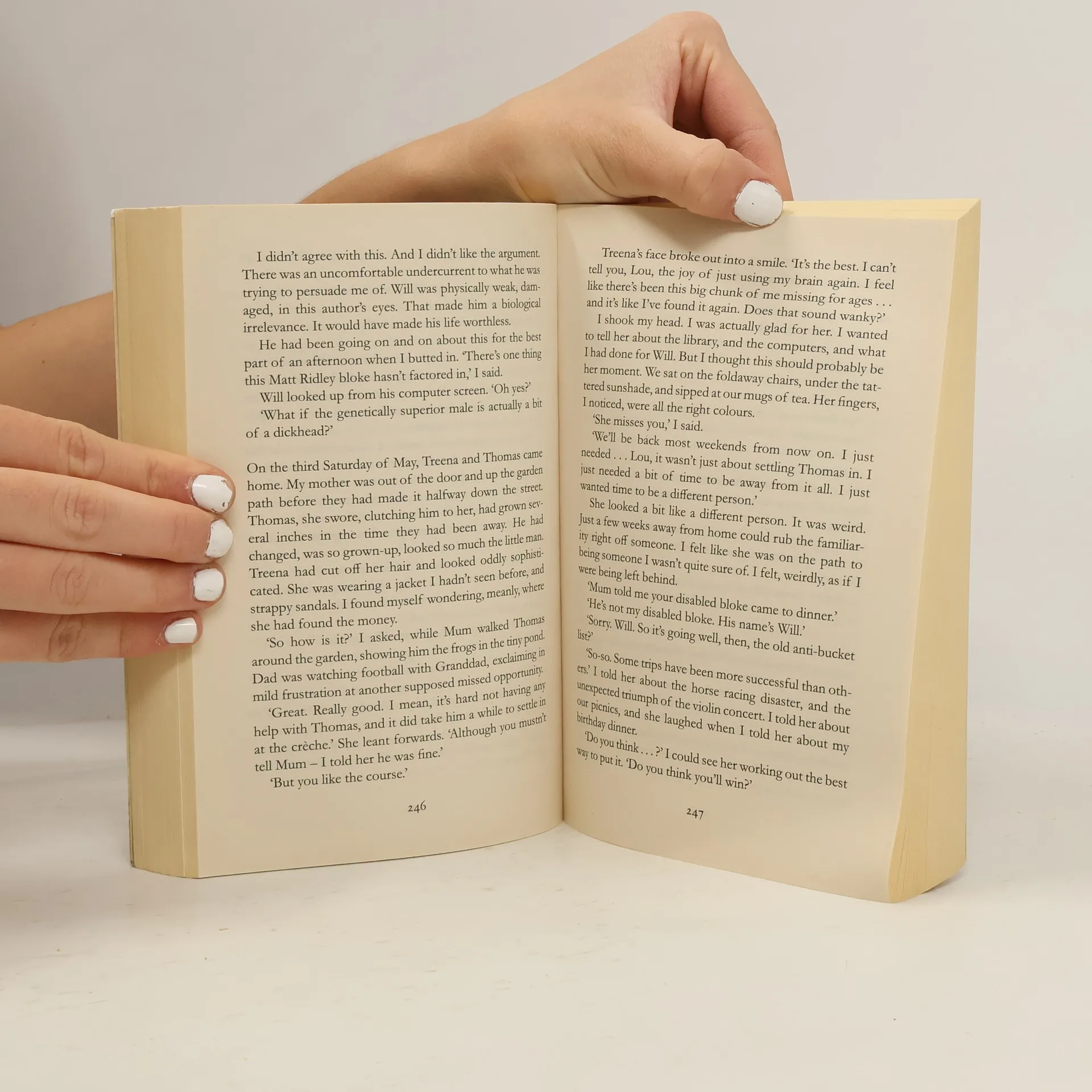 Lou Clark knows lots of things. She knows how many footsteps there are between the bus stop and home. She knows she likes working in The Buttered Bun tea shop and she knows she might not love her boyfriend Patrick. What Lou doesn't know is she's about to lose her job or that knowing what's coming is what keeps her sane. Will Traynor knows his motorcycle accident took away his desire to live. He knows everything feels very small and rather joyless now and he knows exactly how he's going to put a stop to that. What Will doesn't know is that Lou is about to burst into his world in a riot of colour. And neither of them knows they're going to change the other for all time.