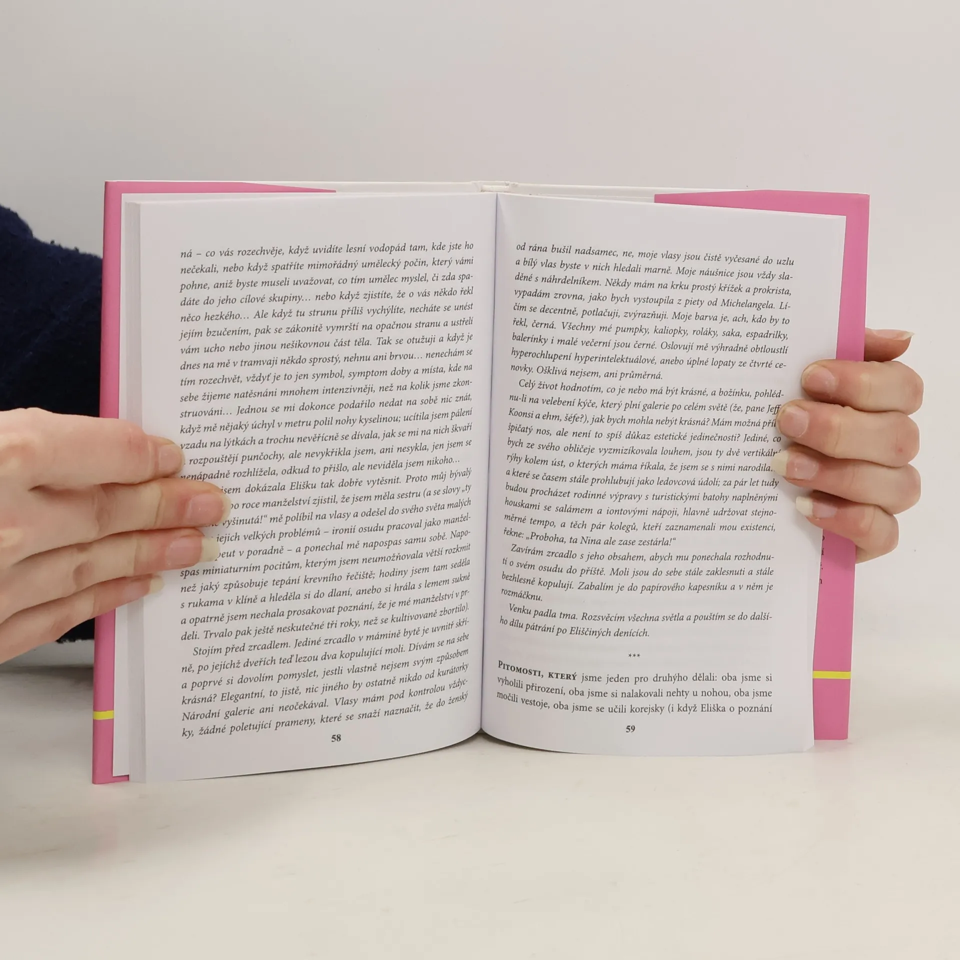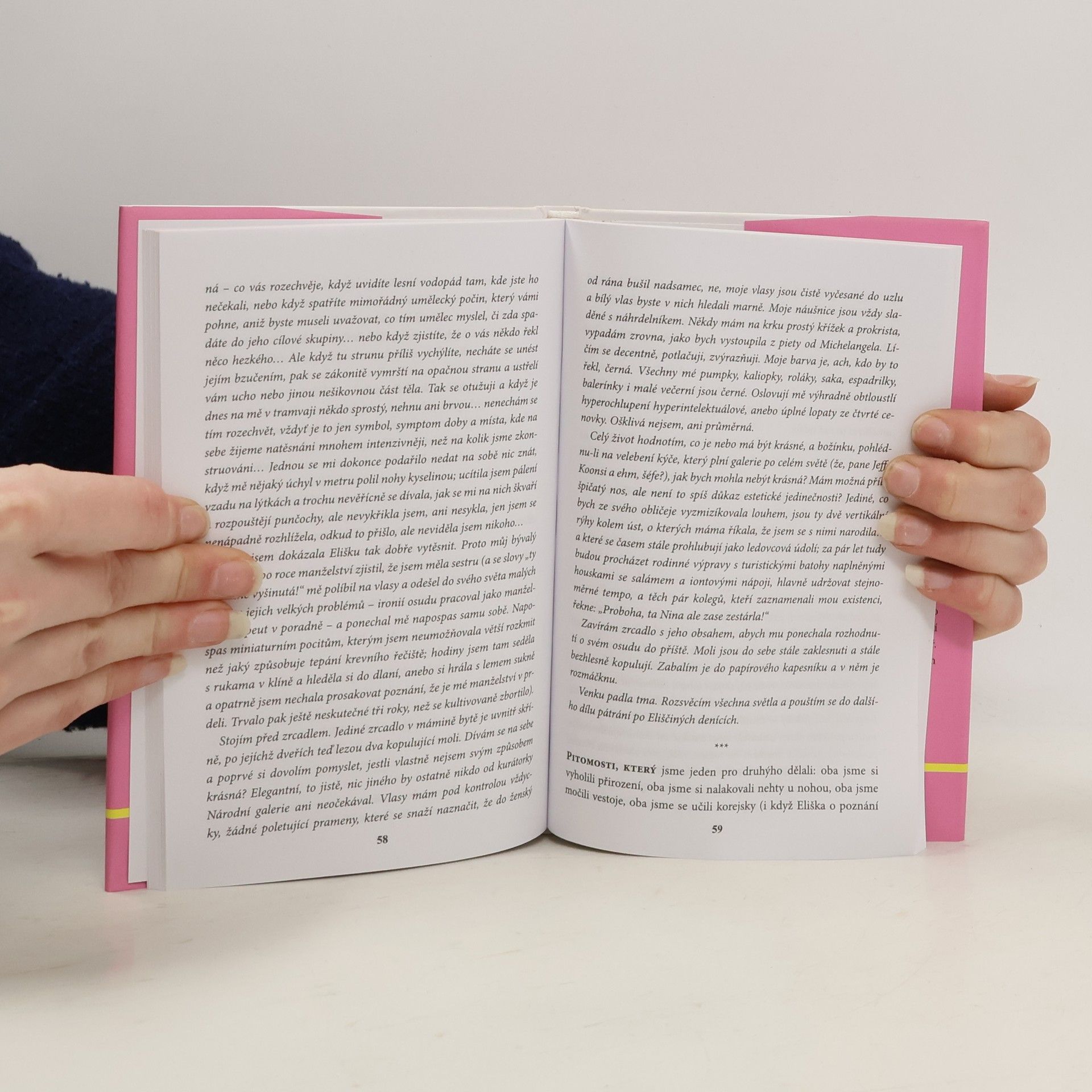 Jeden den, dvě místa, dva lidé a dvě setkání se smrtí se stávají spouští pro sestřih vzpomínek, zážitků, klamných závěrů a deformovaných temných zákoutí. On se stává poslem špatných zpráv, ona musí vypořádat pozůstalost… Podivní hrdinové, které spojují pohledy zpět, střepy paměti společných zážitků, vlastní pyramidy stejných příběhů viděných po svém. Jsou cyničtí a zranitelní. Jsou vulgární a jemní. Hledají cestu k sobě a i kolem sebe. Ale na konci cesty čekává smrt a ne vždycky se milenci sejdou. Kniha je nevšedním příběhem a překvapivě hlubokou sondou do pekla ztráty nevinnosti, do života lidí dospívajících na sklonku předlistopadového režimu. Je to příběh čtivý a pravdivý. Jeho hrdinové žijí u nás doma.