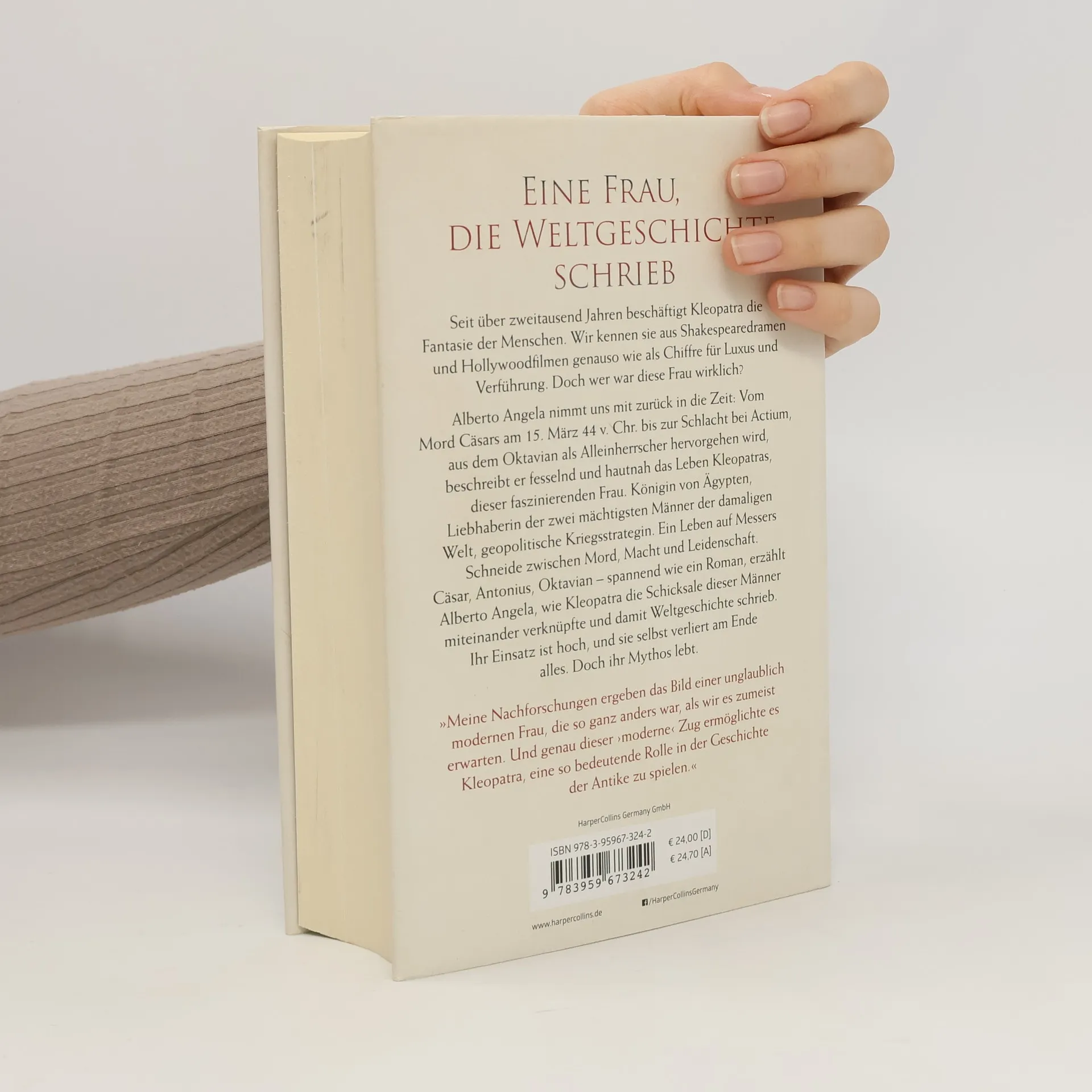 Eine Frau, die Weltgeschichte schrieb Seit über zweitausend Jahren beschäftigt Kleopatra die Fantasie der Menschen. Wir kennen sie aus Shakespearedramen und Hollywoodfilmen genauso wie als Chiffre für Luxus und Verführung. Doch wer war diese Frau wirklich? Alberto Angela nimmt uns mit zurück in die Zeit: Vom Mord Cäsars am 15. März 44 v. Chr. bis zur Schlacht bei Actium, aus dem Oktavian als Alleinherrscher hervorgehen wird, beschreibt er fesselnd und hautnah das Leben Kleopatras, dieser faszinierenden Frau. Königin von Ägypten, Liebhaberin der zwei mächtigsten Männer der damaligen Welt, geopolitische Kriegsstrategin. Ein Leben auf Messers Schneide zwischen Mord, Macht und Leidenschaft. Cäsar, Antonius, Oktavian – spannend wie ein Roman, erzählt Alberto Angela, wie Kleopatra die Schicksale dieser Männer miteinander verknüpfte und damit Weltgeschichte schrieb. Ihr Einsatz ist hoch, und sie selbst verliert am Ende alles. Doch ihr Mythos lebt. » Meine Nachforschungen ergeben das Bild einer unglaublich modernen Frau, die so ganz anders war, als wir es zumeist erwarten. Und genau dieser ›moderne‹ Zug ermöglichte es Kleopatra, eine so bedeutende Rolle in der Geschichte der Antike zu spielen. « Alberto Angela » Vielmehr verbindet Angela auf wunderbare Weise populäre, ja sinnliche Darstellung mit harter Quellenkritik, die aus einem soliden Wissen über das Zeitalter seiner Akteure schöpft. « WELT Online