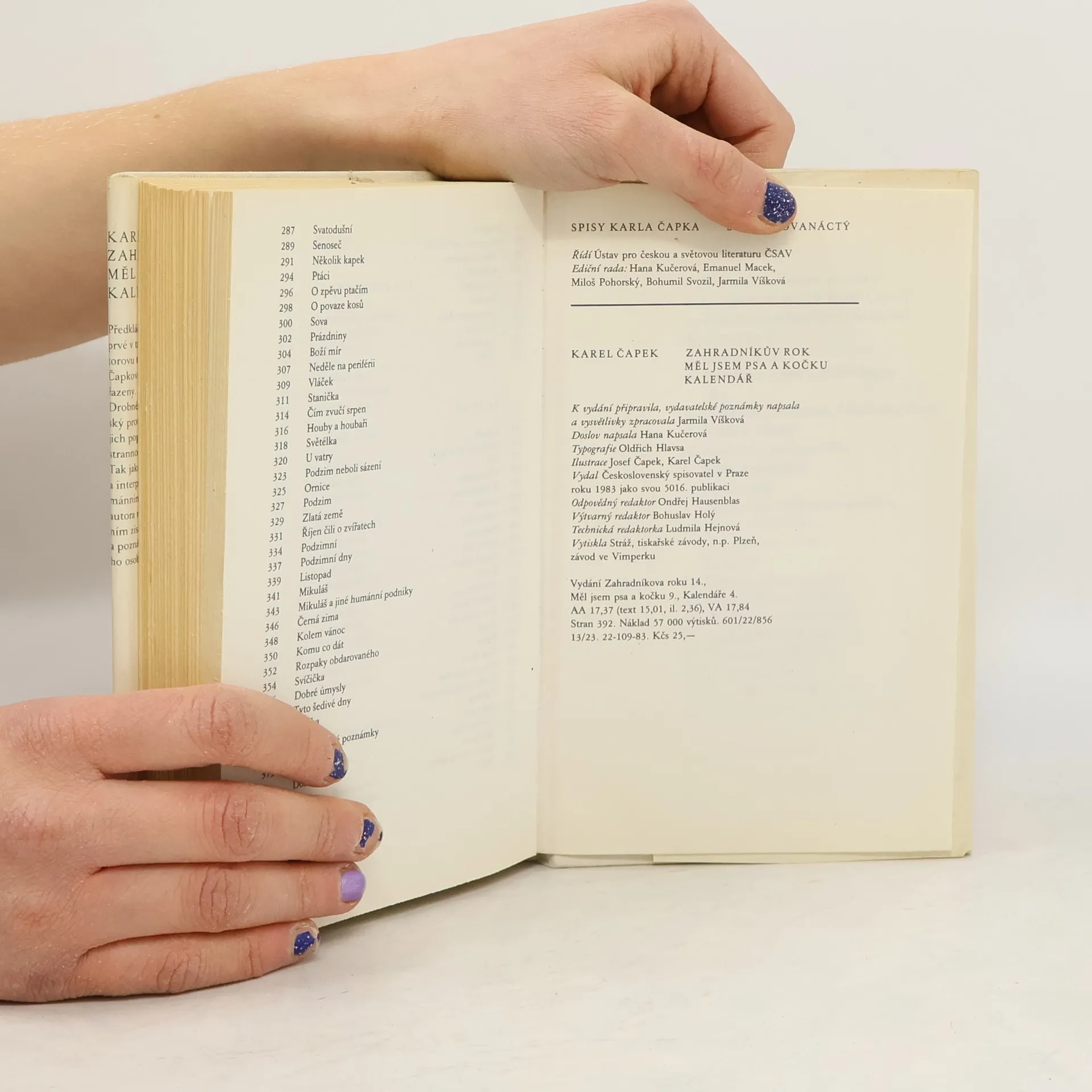 Soubor drobnějších prací Karla Čapka v uceleném vydání tvorby pro noviny. Předkládaný soubor drobnějších prací Karla Čapka představuje poprvé v takto uceleném vydání čtenářsky oblíbenou a stále živou autorovu tvorbu pro noviny. Drobné a zábavné články dokumentují v Čapkově tvorbě novinářský protipól k beletristickým dílům světového ohlasu, nicméně jejich popularita a trvalá hodnota v českém prostředí dokládá všestrannost i specificky české zabarvení autorova pohledu na svět. Tak jako ve svých dílech světově proslulých, i zde Karel Čapek vidí a interpretuje skutečnost především v jejím lidském, tvořivě humánním aspektu. Zahrada, zvířata, přírodní děje se tak stávají pro autora nejen materiálem, který příznačným čapkovským uhnětením získává tvar, v němž se zrcadlí hodnota a krása vnímaného a poznávajícího lidského ducha, ale především předmětem vroucího osobního zájmu, odbornického zaujetí i prosté lidské potřeby.