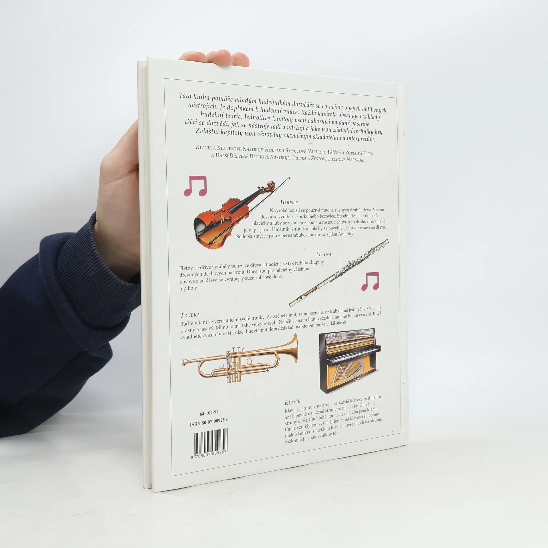 Obrazová publikace je doplněna základními poznatky všeobecné hudební nauky, dalšími poznatky o nástrojích a jejich skupinách, množstvím notových příkladů a charakteristikami vybraných skladatelů.