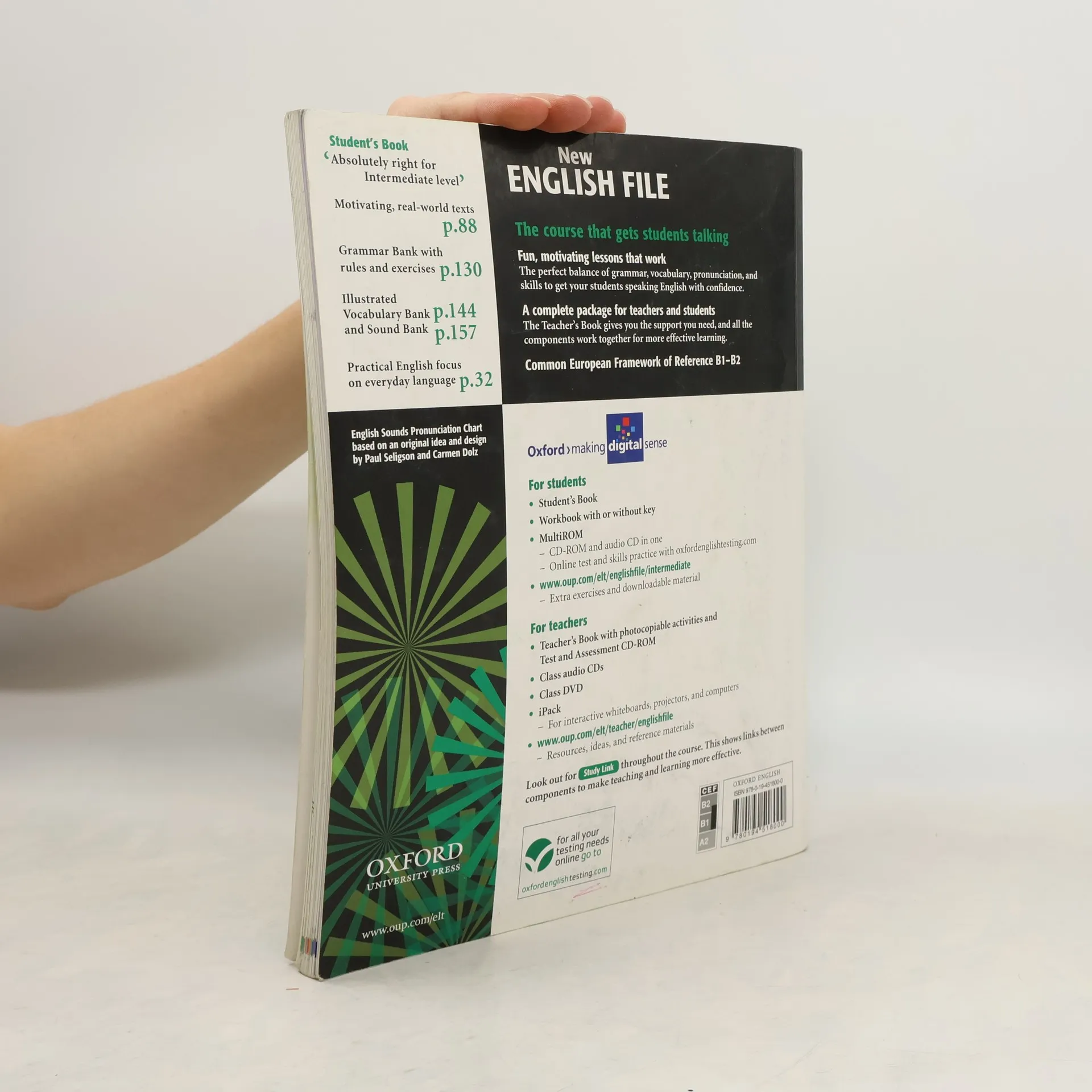 7 units Practical English lessons with video Consolidation and review pages after each unit Communication section and Listening scripts Grammar Bank, Vocabulary Bank, Irregular Verbs, and Sounds Bank