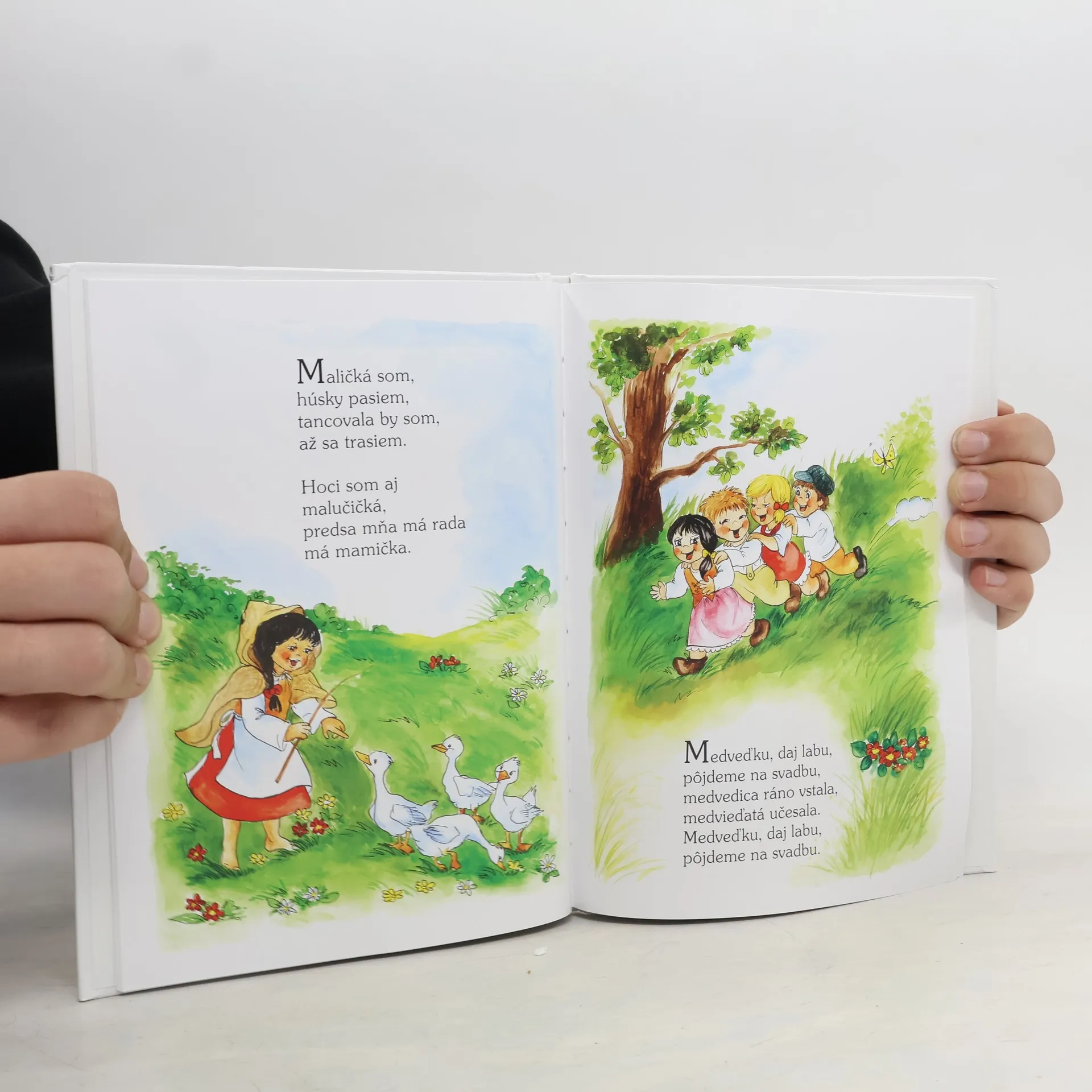 Chodí pešek okolo, Naše Káča pláče, Eniky, beniky, kliky bé, Nestarej se, ženo má, Kopali, orali, já ještě ležel... a ďalšie známe i zabudnuté slovenské ľudové ríkadlá a básničky sú doplnené veselými ilustráciami Vladimíry Vopičkovej. Kniha plná krátkych, ľahko zapamätateľných ríkadiel je určená našim najmenším.
