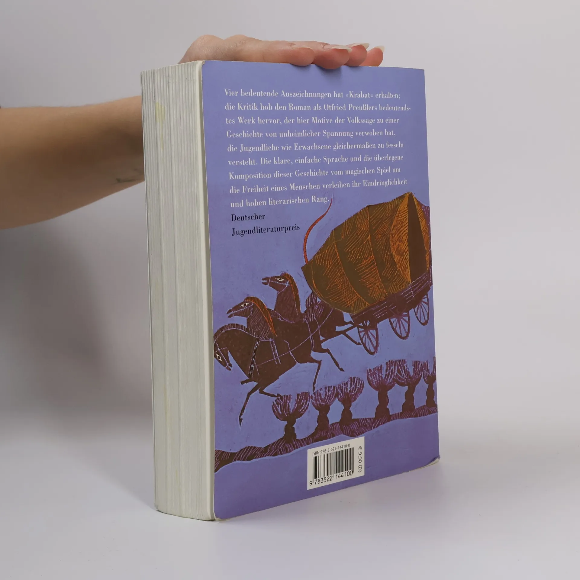 Drei Jahre verbringt Krabat beim teuflischen Meister in der Mühle im Koselbruch. Während seiner Lehrzeit als Müllerjunge lernt Krabat nicht nur das Müllern. Sein Meister ist ein böser Zauberer, aber durch die Liebe eines Mädchens kann Krabat sich und die anderen Müllerburschen aus den Fängen des Meisters retten und ihn unschädlich machen. Schulausgabe (kompletter Text) mit Zusatzinformationen zur Krabat-Sage, zur Entstehung des Buches und zum Autor. Ab 12 Jahren. Neuausgabe ab August 2009: kompletter Text ohne Zusatzinformationen: ISBN 978-3-522-20087-5.