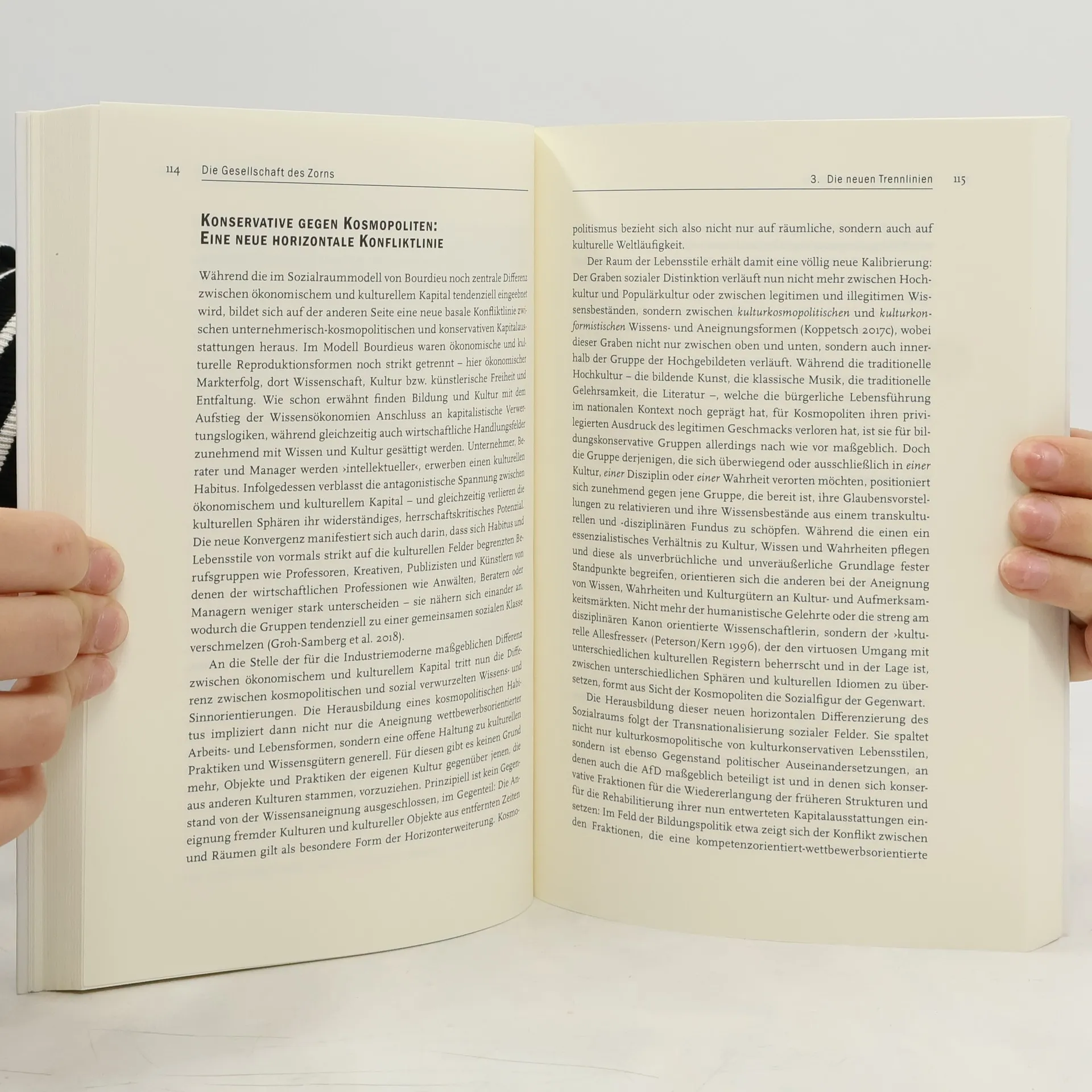 Was noch in den 1990er Jahren undenkbar war, ist mittlerweile Alltag: Ganze Bevölkerungsgruppen verlassen den Boden der gemeinsamen Wirklichkeit, kehren etablierten politischen Narrativen zornig den Rücken oder bestreiten gar die Gültigkeit wissenschaftlichen Wissens. Der Aufstieg des Rechtspopulismus markiert nach Dekaden der Konsenskultur eine erneute Politisierung der Gesellschaft. Gängige Erklärungen für die Entstehung des Rechtspopulismus ziehen die Ereignisse der Fluchtmigration von 2015 oder vorgebliche Persönlichkeitsdefizite seiner Anhänger als Ursachen heran. Cornelia Koppetsch dagegen sieht die Gründe in dem bislang unbewältigten Epochenbruch der Globalisierung. Wirtschaftliche, politische oder kulturelle Grenzöffnungen werden als Kontrollverlust erlebt und wecken bisweilen ein unrealistisches Verlangen nach der Wiederherstellung der alten nationalgesellschaftlichen Ordnung. Konservative Wirtschafts- und Kultureliten sowie Gruppen aus Mittel- und Unterschicht, die auf unterschiedliche Weise durch Globalisierung deklassiert werden, bilden dabei eine klassenübergreifende Protestbewegung gegen die globale Öffnung der Gesellschaft.
