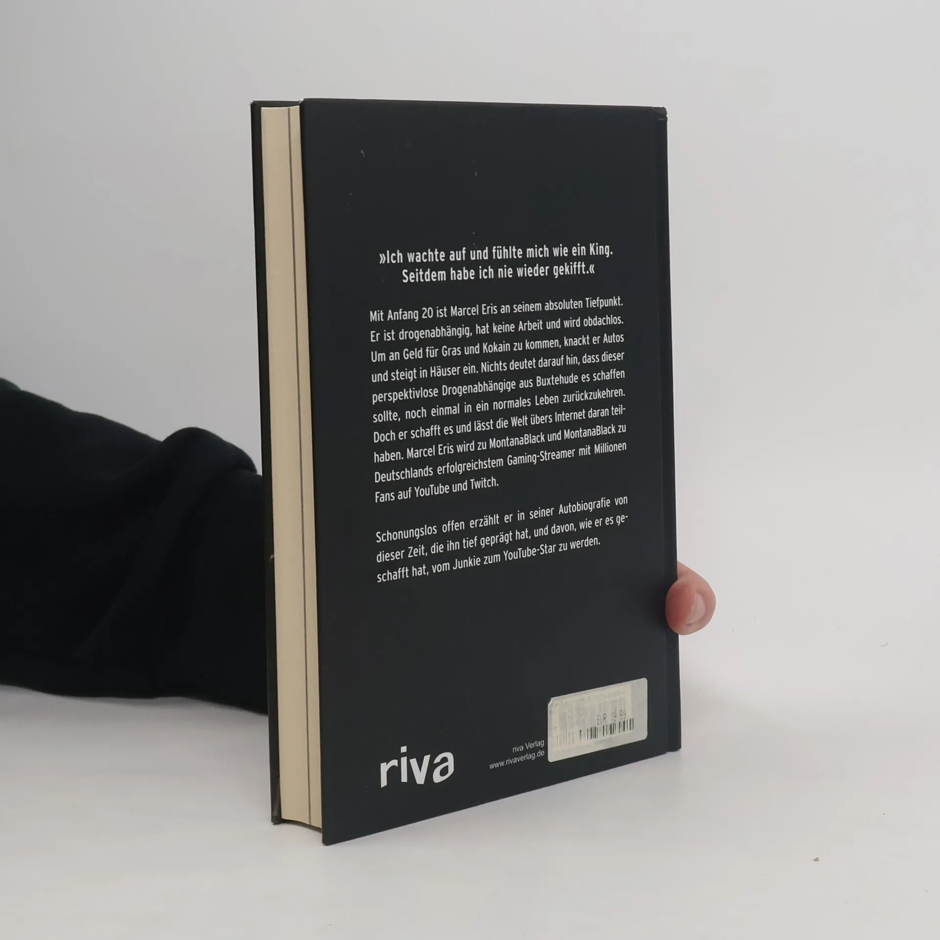 "Ich wachte auf und fühlte mich wie ein King. Seitdem habe ich nie wieder gekifft."Mit Anfang 20 ist Marcel Eris an seinem absoluten Tiefpunkt. Er ist drogenabhängig, hat keine Arbeit und wird obdachlos. Um an Geld für Gras und Kokain zu kommen, knackt er Autos und steigt in Häuser ein. Nichts deutet darauf hin, dass dieser perspektivlose Drogenabhängige aus Buxtehude es schaffen sollte, noch einmal in ein normales Leben zurückzukehren. Doch er schafft es und lässt die Welt übers Internet daran teilhaben. Marcel Eris wird zu MontanaBlack und MontanaBlack zu Deutschlands erfolgreichstem Gaming-Streamer mit Millionen Fans auf YouTube und Twitch.Schonungslos offen erzählt er in seiner Autobiografie von dieser Zeit, die ihn tief geprägt hat, und davon, wie er es geschafft hat, vom Junkie zum YouTube-Star zu werden.