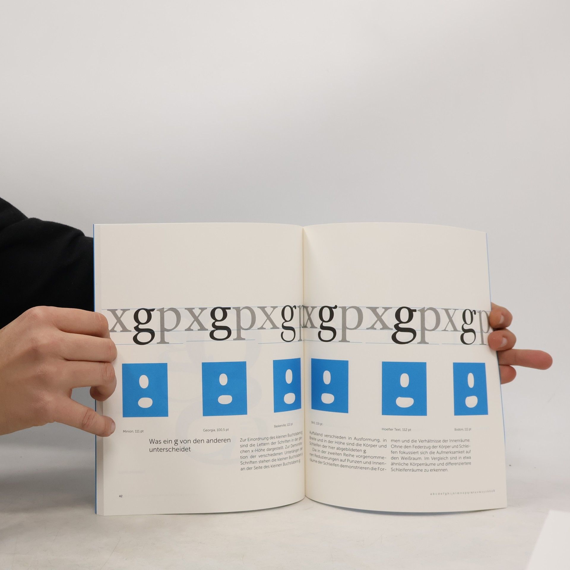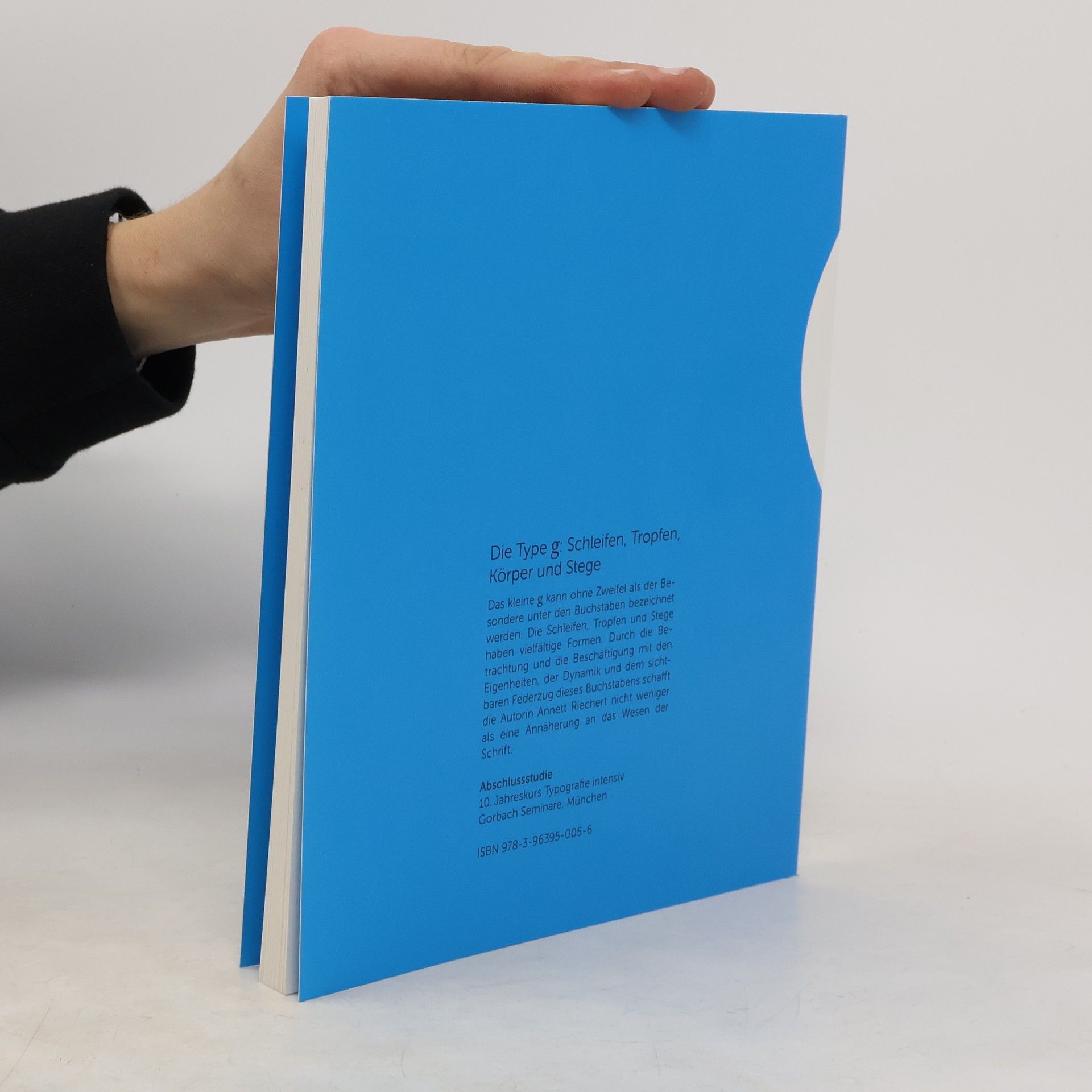 Die Type g: Schleifen, Tropfen, Körper und Stege Das kleine g kann ohne Zweifel als der Besondere unter den Buchstaben bezeichnet werden. Die Schleifen, Tropfen und Stege haben vielfältige Formen. Durch die Betrachtung und die Beschäftigung mit den Eigenheiten, der Dynamik und dem sichtbaren Federzug dieses Buchstabens schafft die Autorin Annett Riechert nicht weniger als eine Annäherung an das Wesen der Schrift. Abschlussstudie 10. Jahreskurs Typografie intensiv Gorbach Seminare, München